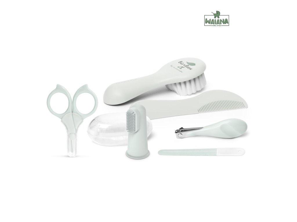 Praktická hygienická sada produktov pre starostlivosť o dieťa rady BIRDIES značky Suavinex obsahuje šesť základných pomôcok potreby pre každodennú starostlivosť o detské vlásky, nechty i ústa.