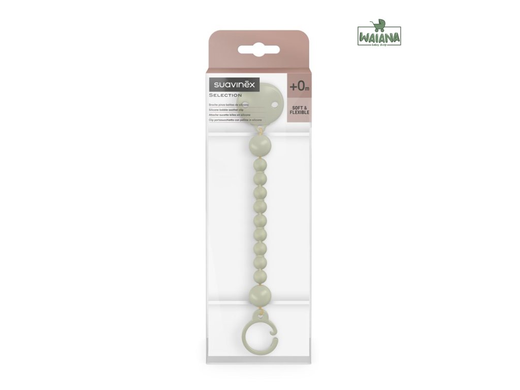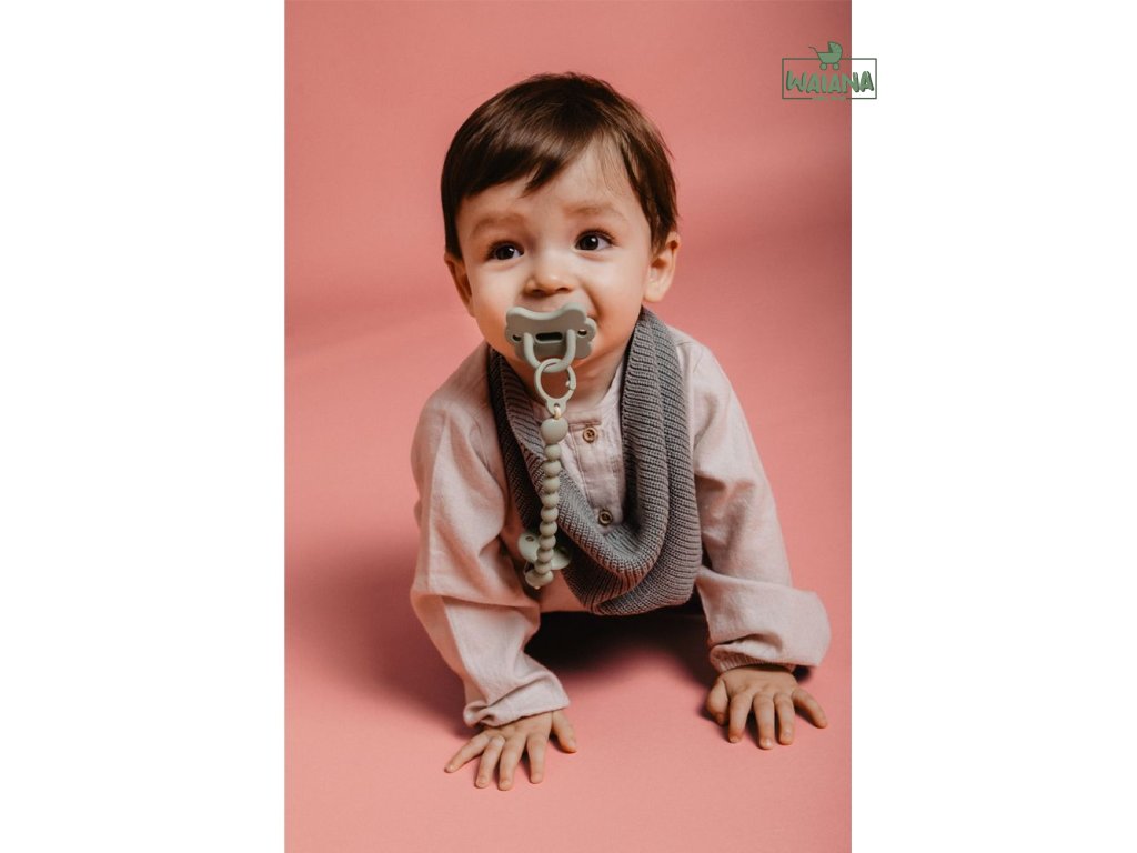 Krásny a praktický klip umožňuje upevniť cumlík na oblečenie dieťaťa a predchádza jeho prípadnému spadnutiu na nečistú zem alebo jeho strate.