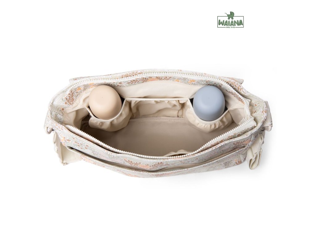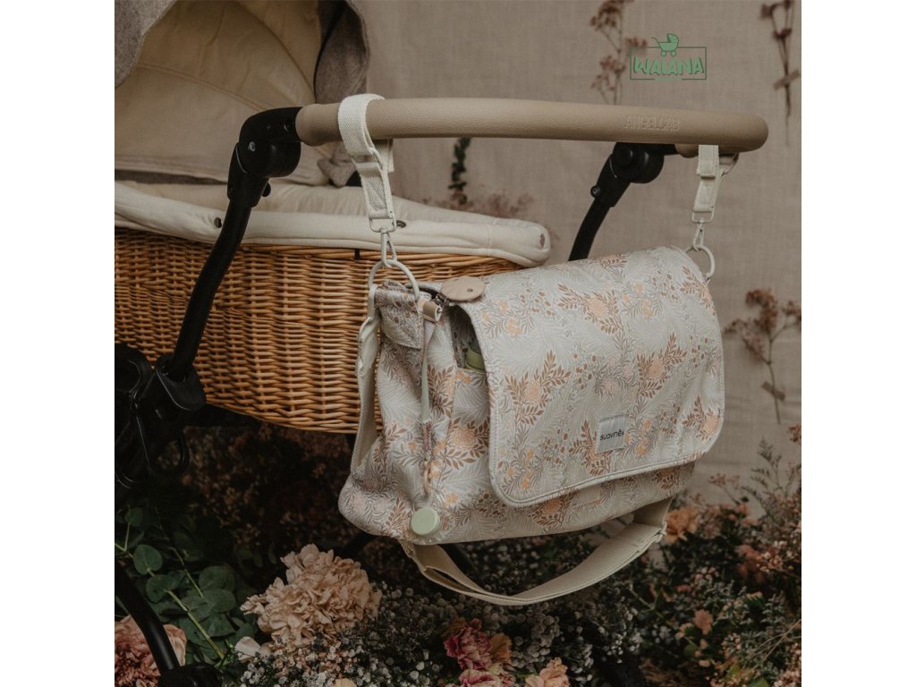 Prostorná a stylová taška z kolekce Poetry, navržená speciálně pro rodiče, kteří chtějí mít všechny věci pro miminko přehledně uspořádané a stále po ruce. Lze ji nosit přes rameno nebo snadno připevnit na kočárek pomocí praktických cvočků.