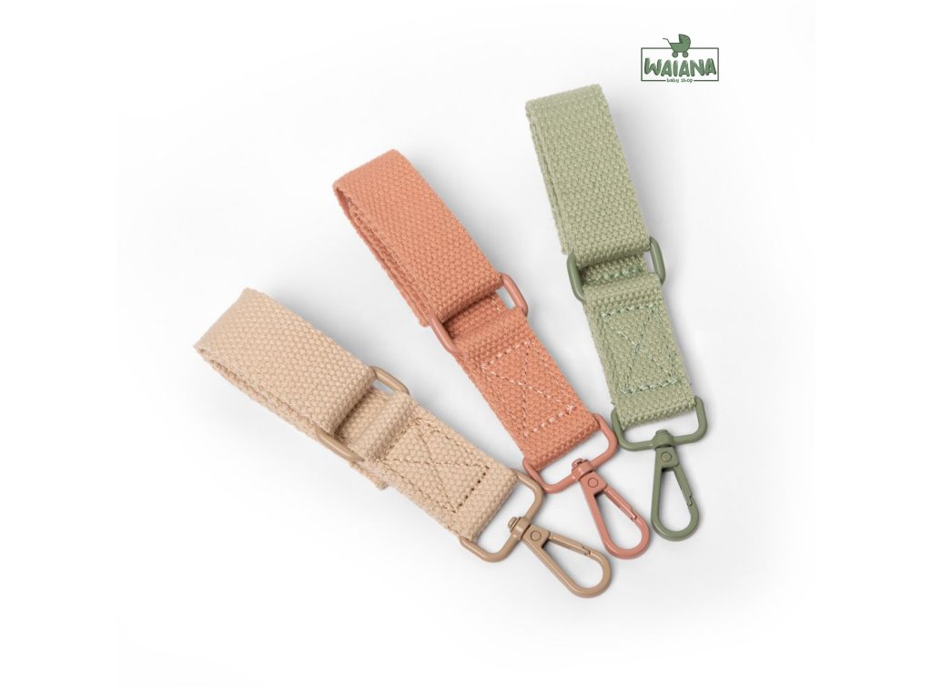 Dlouhý popruh přes rameno a 2 krátké pásky na suchý zip pro snadné uchycení na kočárek
