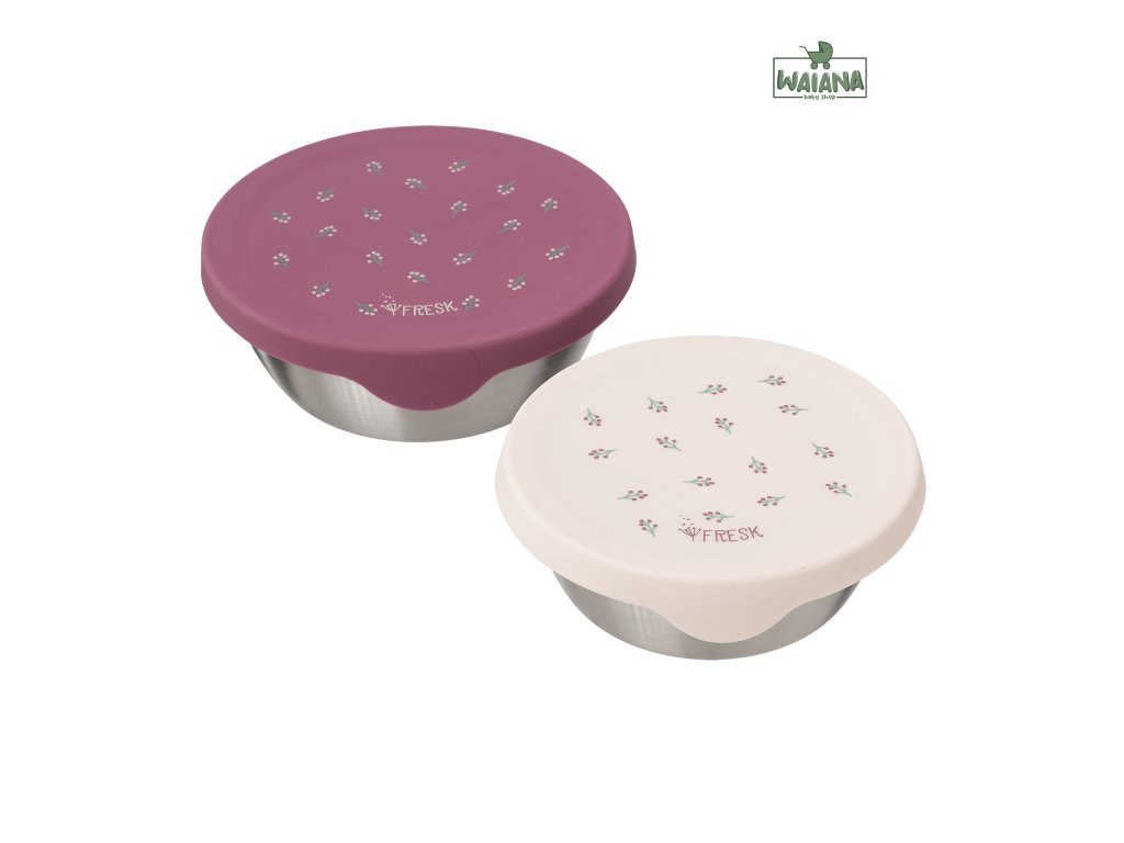 Dve dózy sú vyrobené z pevnej nehrdzavejúcej ocele a majú praktické silikónové viečka. Oceľové dno zabezpečuje, že nenaťahujú farbu ani vôňu z potravín, a flexibilné silikónové viečko ľahko otvoria aj malé detské rúčky.