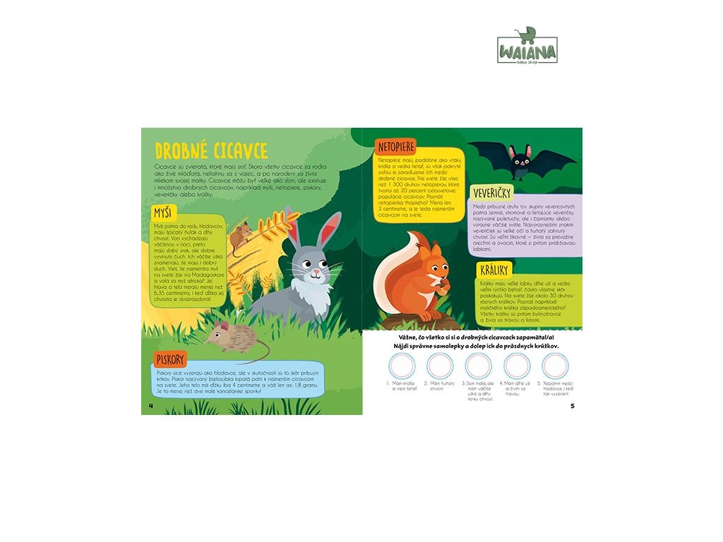 Svietia v tme - Zvieratká Samolepková knižkaZábavné aktivity so samolepkami si deti užijúSamolepková knížka so zvieratkami z celého sveta vás zavedie do rôznych oblastí, kde na vás čaká mnoho zábavy.Samolepky svietia v tmeObsahuje 48 strán plných informácii i zábavných aktivít a viac ako 100 samolepiek (z toho dva listy svietiacich samolepiek).