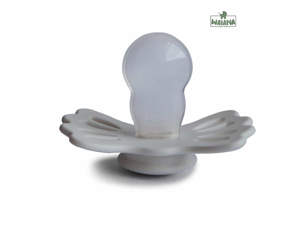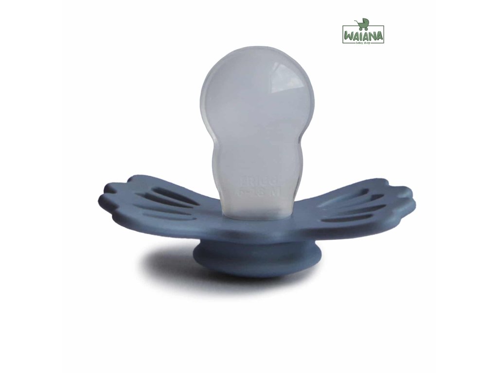 FRIGG Lucky je symetrický cumlík s mierne splošteným cumlíkom v tvare slzy. Symetrický cumlík vždy správne sedí v ústach dieťaťa, bez ohľadu na to, či je otočený nahor alebo dole.