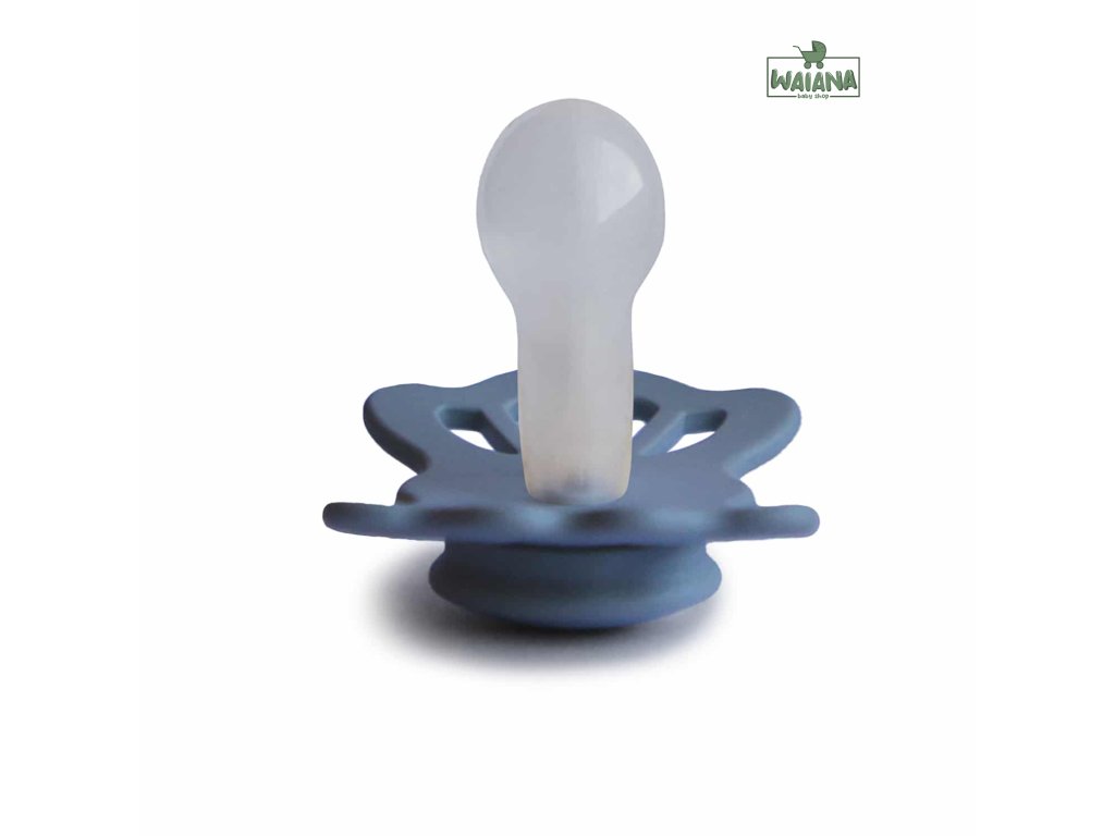 FRIGG Lucky je symetrický cumlík s mierne splošteným cumlíkom v tvare slzy. Symetrický cumlík vždy správne sedí v ústach dieťaťa, bez ohľadu na to, či je otočený nahor alebo dole.