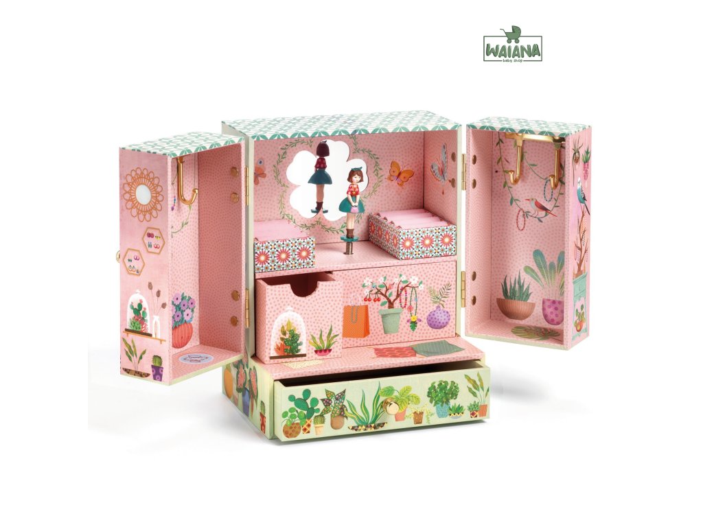 Tajná záhrada: hracia skrinka a šperkovnicaMagická hudobná skrinka s úložným priestoromTajná záhrada – hracia skrinka a šperkovnica je krásna hudobná skrinka od značky Djeco, ktorá spája upokojujúcu hudbu a praktický úložný priestor v jednom kúsku. Po natiahnutí mechanizmu sa spustí jemná melódia Vyzvanie do tanca (C. M. von Weber) a figúrka sa začne jemne pohybovať. Skrinka zároveň slúži ako šperkovnica alebo úložný box na detské poklady.Prečo si vybrať skrinku od Djecovhodná pre deti od 6 rokovjemná hudba pri natiahnutí kľúčikapraktický úložný priestor pre šperky a pokladykrásny motív tajnej záhradydekoratívny doplnok do detskej izbyObsah baleniadrevená hudobná skrinka s motívom Tajnej záhrady