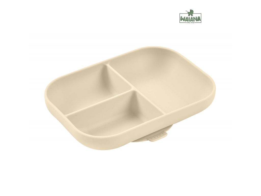 Tanier s prísavkou z vysoko kvalitného silikónu umožňuje uchytenie k stolu alebo pultu jedálenskej stoličky. Ergonomický tvar uľahčuje naberanie príkrmu. Tri priehradky umožňujú oddelené servírovanie jednotlivých súčastí detského pokrmu.