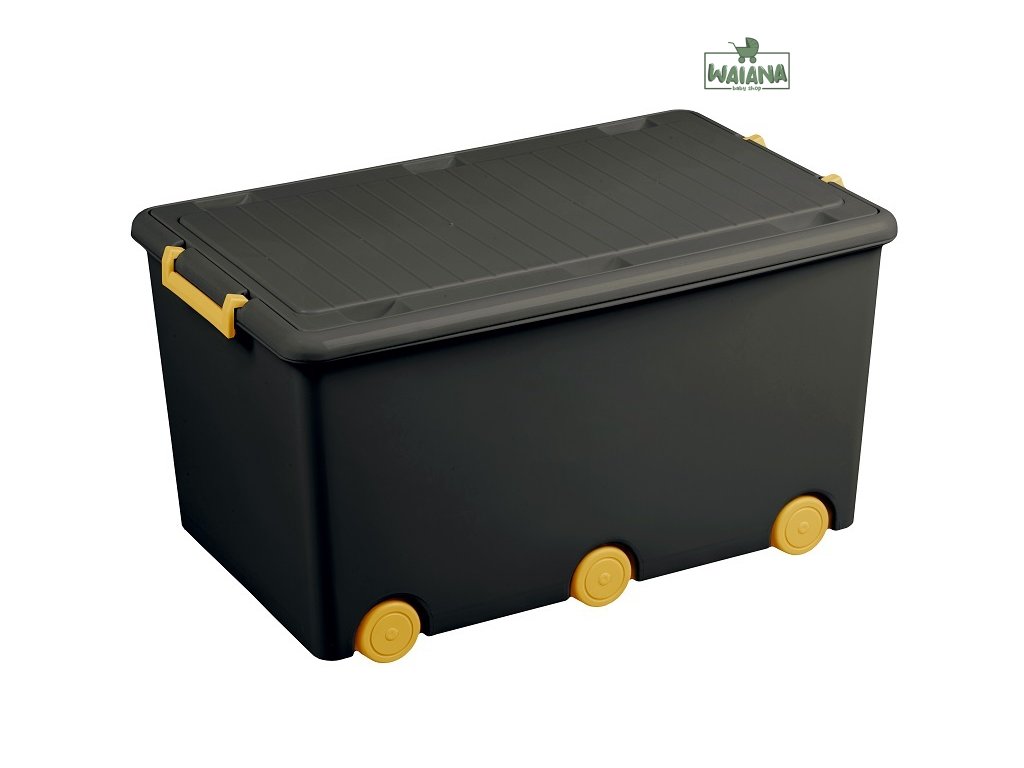 Praktický plastový box na kolieskach na uloženie hračiek s vrchnákom. Je vyrobený z certifikovaných, vysokokvalitných a bezpečných materiálov.