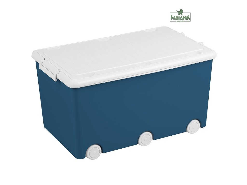 Praktický plastový box na kolieskach na uloženie hračiek s vrchnákom. Je vyrobený z certifikovaných, vysokokvalitných a bezpečných materiálov.