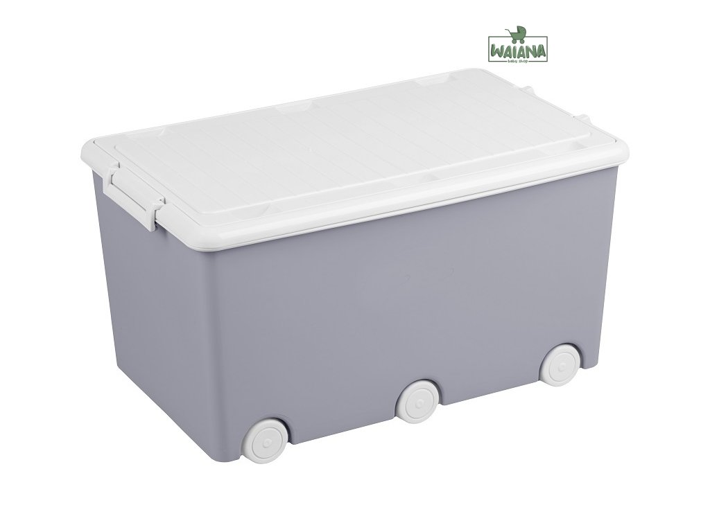 Praktický plastový box na kolieskach na uloženie hračiek s vrchnákom. Je vyrobený z certifikovaných, vysokokvalitných a bezpečných materiálov.