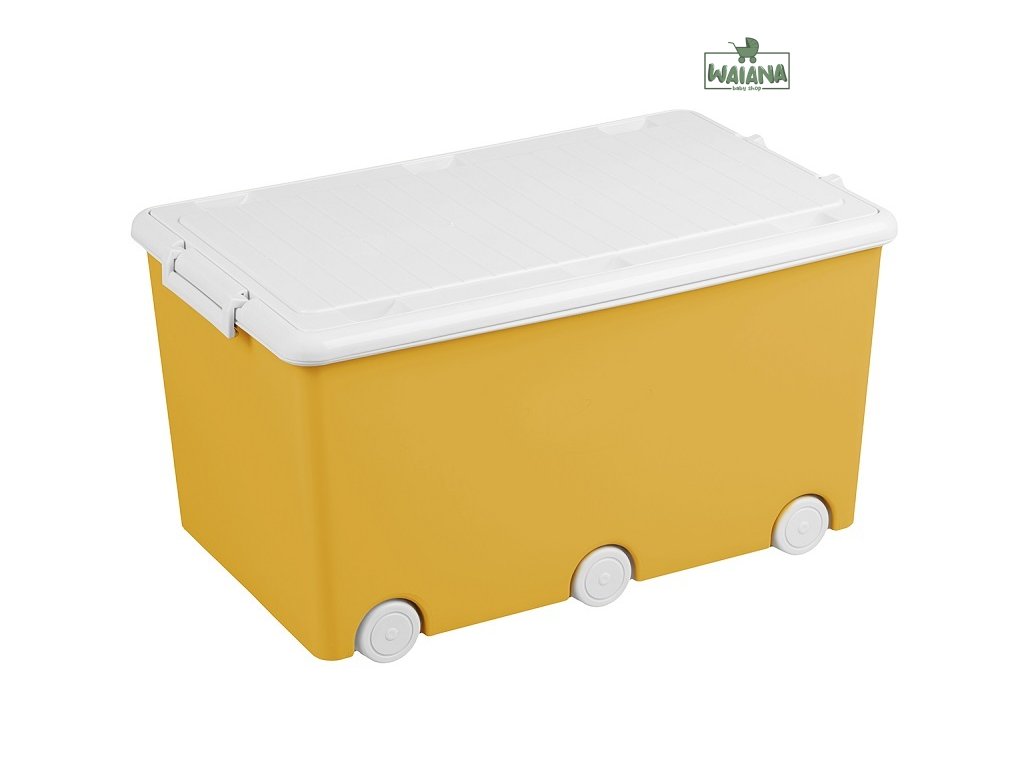 Praktický plastový box na kolieskach na uloženie hračiek s vrchnákom. Je vyrobený z certifikovaných, vysokokvalitných a bezpečných materiálov.