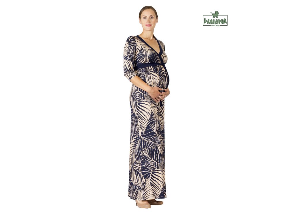 Tehotenské a dojčiace šaty Rialto Lonffaux modrobéžové listy 0537 Dámská velikost: 44