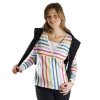 Veselé dojčiace a tehotenské tričko s dlhým rukávom. Je vyrobené z prírodného, priedušného a pritom pružného materiálu zo Španielska. Prekrížený výstrih je doplnený vnútorným dielom pre ľahké dojčenie. Spodná časť predného dielu je nariasená do vodorovného švu a toto riasenie spolu s elasticitou úpletu vytvára dostatok priestoru pre bruško. Vďaka svojej farebnosti a vzoru tlače sa tričko hodí prakticky k všetkým nohaviciam a sukniam, využijete ho ako do práce tak aj na voľný čas.