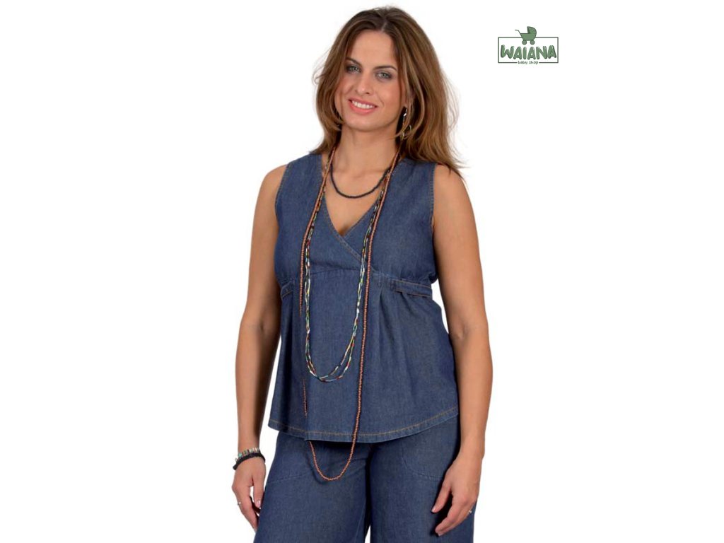 Obľúbené a velmi pohodlné dlhé tehotenské nohavice z príjemnej bavlněnej džínsoviny. Majú pružný pás volný strih so širokými nohavicami a klinovými vreckami na predných dieloch.