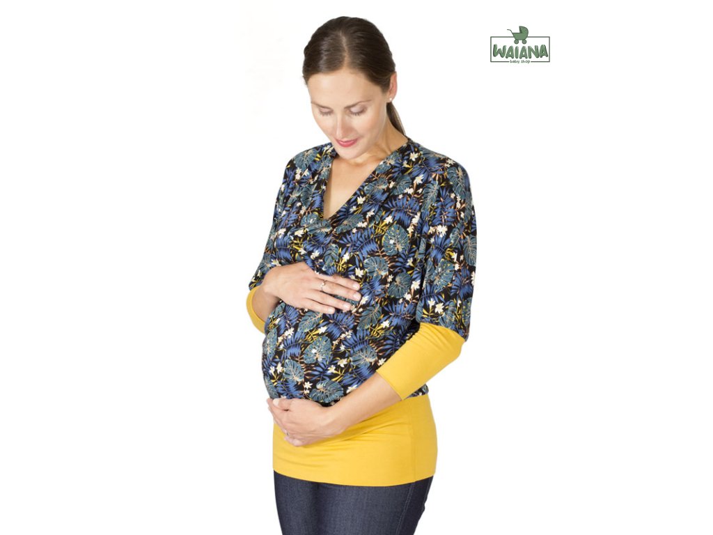 Tehotenské tričko Rialto River Modrozelené Listy 0523 Dámská velikost: 42