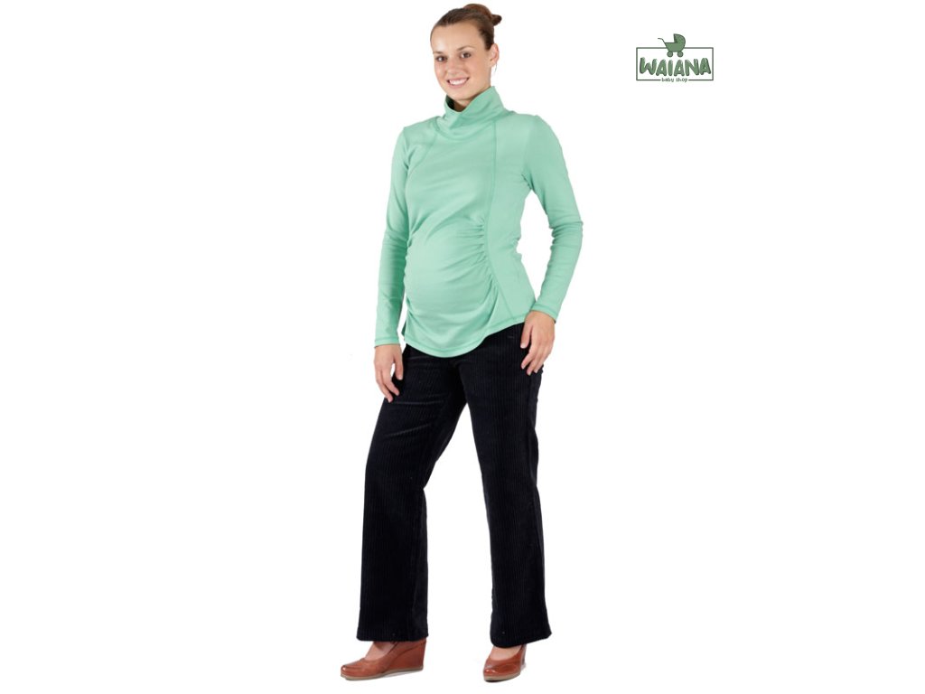 Bavlnené tehotenské tričko s dlhým rukávom a stojačikom. Predný diel je členený pozdĺžnymi švami, do ktorých je predný diel nabraný pre voľnosť na rastúce bruško. Členenie je ozdobne prešité. Tričko je teplejšie vďaka tomu, že je bavlnené.