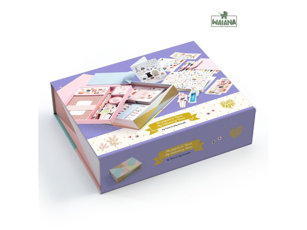 Tinou: veľká sada na pekné písanieKreatívna sada na písanie, kreslenie a tvorenieTinou – veľká sada na pekné písanie je komplexná papierenská súprava od značky Djeco, ktorá ponúka všetko, čo deti potrebujú na tvorivé písanie listov, poznámok, pozvánok alebo ilustrácií. Sada je uložená v praktickej ilustrovanej škatuľke s priečinkami a obsahuje rôzne zápisníky, karty, obálky, samolepky a dekoratívne doplnky, ktoré podporujú fantáziu a osobitý štýl detských výtvorov.Prečo si vybrať sadu od Djecovhodná pre deti od 5 rokovkompletná výbava na písanie a tvoreniemnožstvo samolepiek a dekoratívnych prvkovideálna na kreatívne aktivity doma aj na cestáchkrásny darček pre deti, ktoré chcú tvoriťObsah baleniaškatuľa s vyberateľným priečinkom10 kariet10 obálok6 hárkov obtlačiek6 hárkov samolepieklinajkový zápisník2 malé linajkové zápisníkykotúčik dekoračnej lepiacej páskyceruzkaguma na gumovanie5 záložiek do knihy