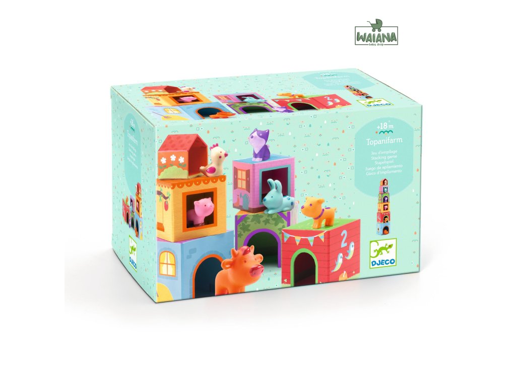 Topanifarm: veža z kociek so zvieratkamiStohovacia hra pre najmenších s motívmi zvieratiek z farmyTopanifarm – veža z kociek so zvieratkami od značky Djeco je hravá manipulačná hračka, ktorá deťom ponúka viacero spôsobov hry v jednom. Deti môžu stavať farebné kocky na seba, vytvoriť vysokú vežu alebo ich použiť samostatne pri hre so zvieratkami a farmárskymi motívmi. Každá kocka je zdobená veselými ilustráciami zvieratiek z farmy a má inú veľkosť, čo deti prirodzene vedie k triedeniu, porovnávaniu a správnemu usporiadaniu. Hra je ideálna pre rozvoj jemnej motoriky, koordinácie a logického myslenia už od útleho veku.Čo Topanifarm rozvíjajemnú motoriku a koordináciu ruka–okologické myslenie a porovnávanie veľkostízmysel pre rovnováhupoznávanie zvieratiek a fariebkreativitu a fantáziuPrečo si vybrať Topanifarm od Djecoviacero herných možností v jednej hračkepevné kartónové kocky vhodné pre malé rukykrásne ilustrácie so zvieratkami z farmyideálne ako prvá stohovacia hračkavhodné pre deti od cca 12 mesiacov