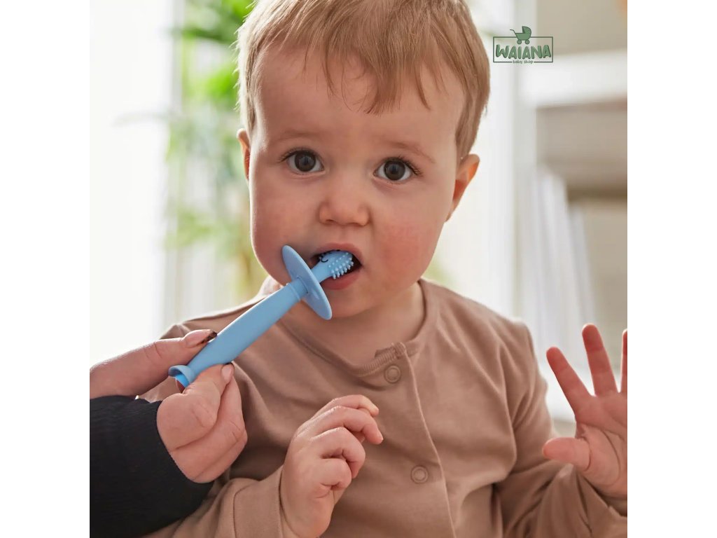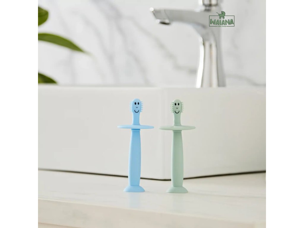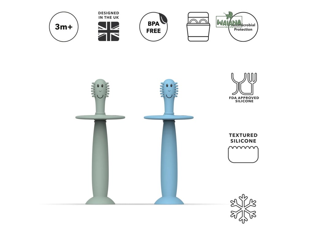 MATCHSTICK MONKEY tréningová zubná kefka so zarážkou je ideálna ako prvá kefka pre vaše bábätko. Mäkká silikónová rukoväť sa ľahko drží aj v drobných rúčkach a jemné, ohybné štetiny sú šetrné k ďasnám a prvým zúbkom. Zabudovaná zarážka zaručuje bezpečné čistenie a antimikrobiálna ochrana BioCote® pomáha udržať kefku dlhšie čistú.