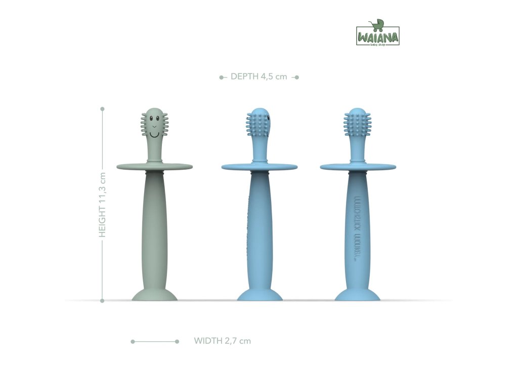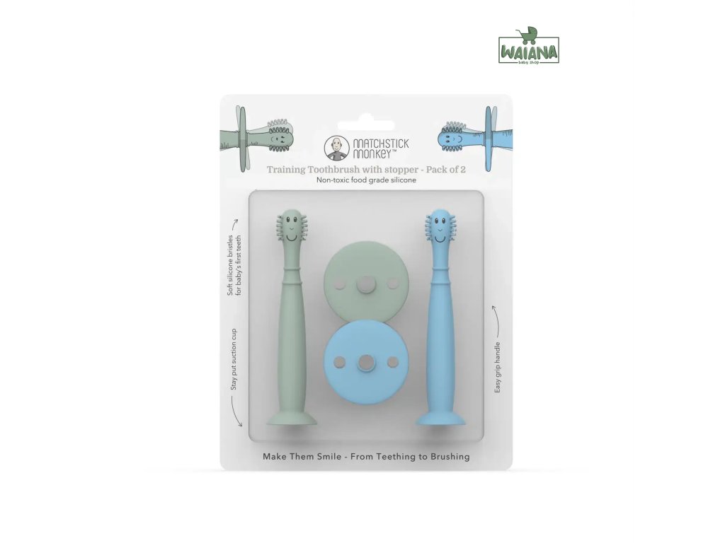 TRÉNINGOVÁ ZUBNÁ KEFKA SO ZARÁŽKOU MATCHSTICK MONKEY – MINT GREEN AND LIGHT BLUE