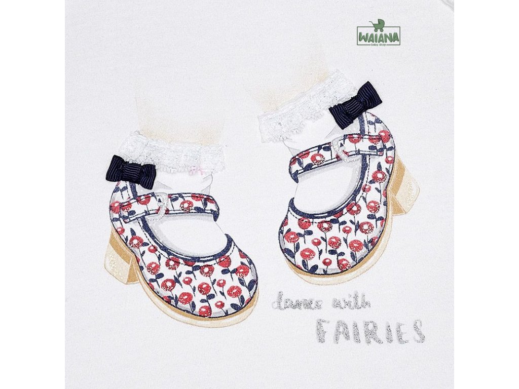 Letní bílé tričko s krátkým rukávem a botičkami pro holčičky od kvalitní španělské značky MAYORAL.
