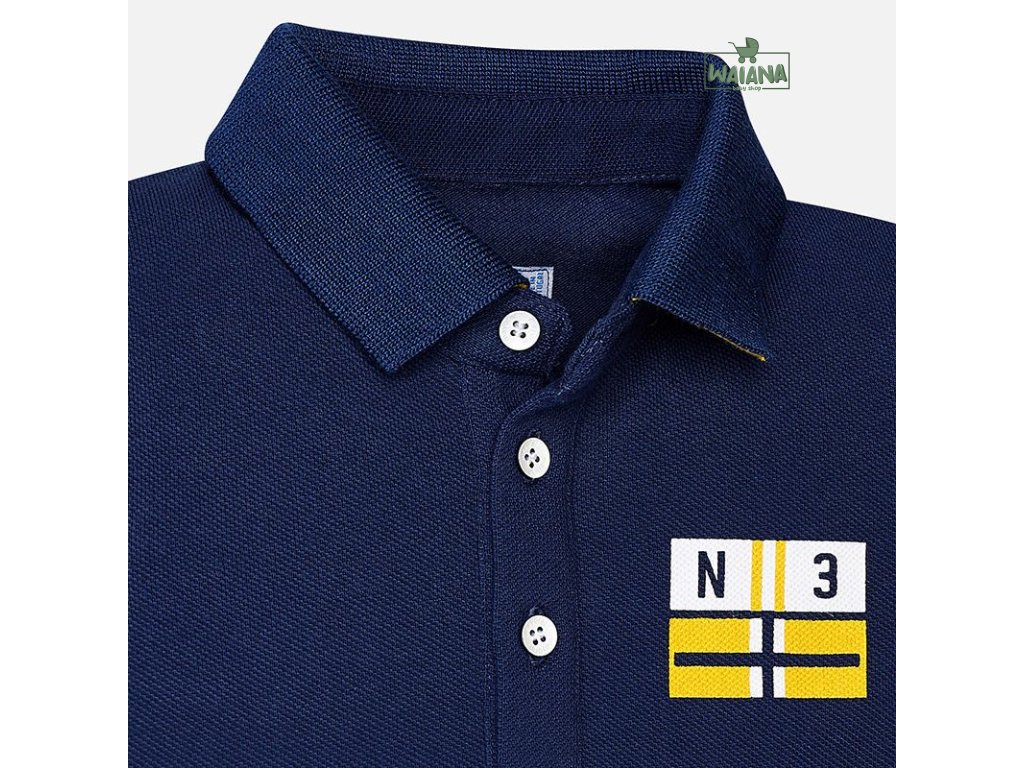 Krásné POLO tričko s krátkým rukávem ideální pro jarní sezónu pro malého chlapečka od kvalitní španělské značky MAYORAL. Elegantní POLO triko v námořnickém design. Na zadní části a rukávku číslo.