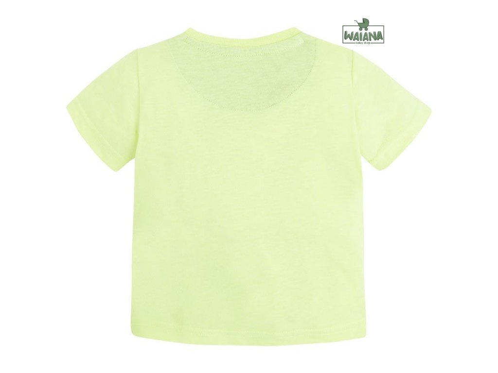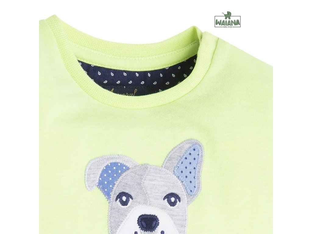 Krásné zelené tričko s krátkým rukávem ideální pro letní sezónu pro malého chlapečka od kvalitní španělské značky MAYORAL. Jednoduché triko s kulatým výstřihem a obrázkem buldočka pro velkou radost malých rarášků.