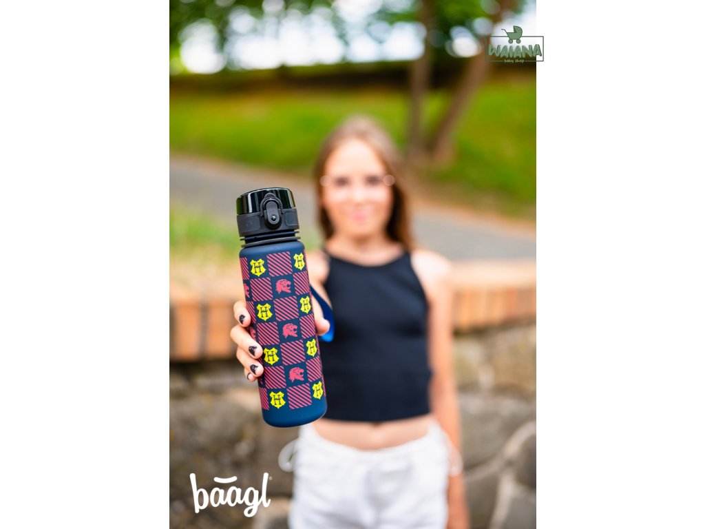 Tritanová fľaša pre deti Harry Potter Rokfort 500 mlV školskej výbave nesmie chýbať poriadna fľaša na nápojeFľaša od BAAGLa je vhodná ako do školy, tak aj na výlety alebo na športový krúžok. Uzamykateľné viečko neprepustí ani kvapku nápoja a zabezpečuje jednoduchú a intuitívnu manipuláciu. Súčasťou fľaše je sitko, vďaka ktorému môžete fľašu použiť i na limonády s ovocím alebo čaj (materiál je vhodný aj na horúce nápoje). K fľaši je pripevnené pútko, ktoré umožňuje pohodlné nosenie v ruke.Certifikovaný tritánový materiál zaručuje maximálnu bezpečnosť a kvalitu nápojaNevydáva nepríjemný plastový zápach, ako je to pri iných plastových materiáloch, a zároveň neobsahuje žiadne zdraviu škodlivé látky (BPA, PVC, ftaláty, či iné). Ostatne, výrobky z tritánu sa používajú aj v zdravotníctve. Používaním fľaše znížite plastový odpad z jednorazových PET fliaš a pomôžete tak znížiť objem vyprodukovaného plastového odpadu, ktorý doteraz končí prevažne na skládkach, v spaľovniach, alebo často aj v prírode.Objem fľaše je 500 ml.