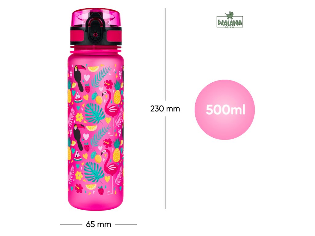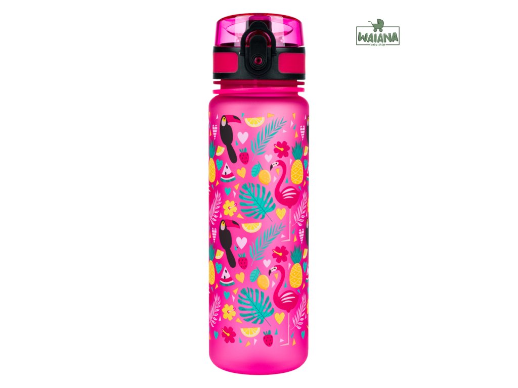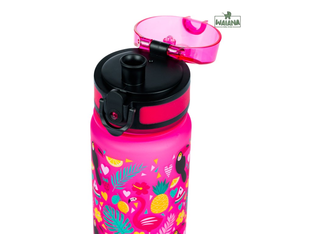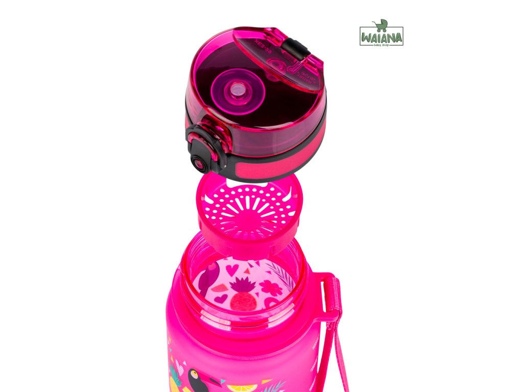 Tritanová fľaša pre deti Plameniaky 500 mlV školskej výbave nesmie chýbať kvalitná fľaška na pitieZdravá fľaša z tritanu s motívom plameniakov sa hodí do školy, na výlety alebo i na športový krúžok. Obsahuje praktické sítko, vďaka ktorému ju môžete použiť i na limonádu s ovocím alebo čaj.Uzamykateľné viečko neprepustí ani kvapku nápoja a zabezpečuje jednoduchú a intuitívnu manipuláciu. Súčasťou fľaše je sitko, vďaka ktorému môžete fľašu použiť i na limonády s ovocím alebo čaj (materiál je vhodný aj na horúce nápoje). K fľaši je pripevnené pútko, ktoré umožňuje pohodlné nosenie v ruke.Certifikovaný tritánový materiál zaručuje maximálnu bezpečnosť a kvalitu nápojaNevydáva nepríjemný plastový zápach, ako je to pri iných plastových materiáloch, a zároveň neobsahuje žiadne zdraviu škodlivé látky (BPA, PVC, ftaláty, či iné). Ostatne, výrobky z tritánu sa používajú aj v zdravotníctve. Používaním fľaše znížite plastový odpad z jednorazových PET fliaš a pomôžete tak znížiť objem vyprodukovaného plastového odpadu, ktorý doteraz končí prevažne na skládkach, v spaľovniach, alebo často aj v prírode.Objem fľaše je 500 ml.
