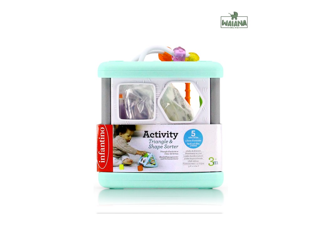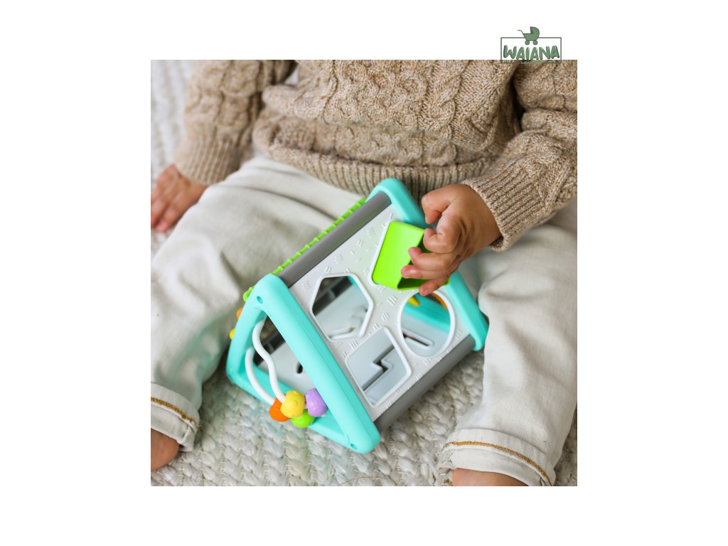 Interaktívna hračka ponúka päť strán zábavných aktivít vrátane otvorov pre štyri farebné vkladacie tvary. Lákať na skúmanie budú aj pohyblivé korálky a pružné farebné hadičky s rôznorodými textúrami.