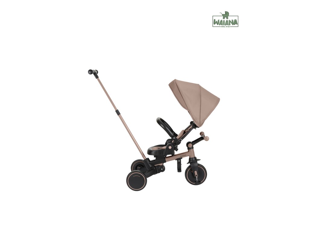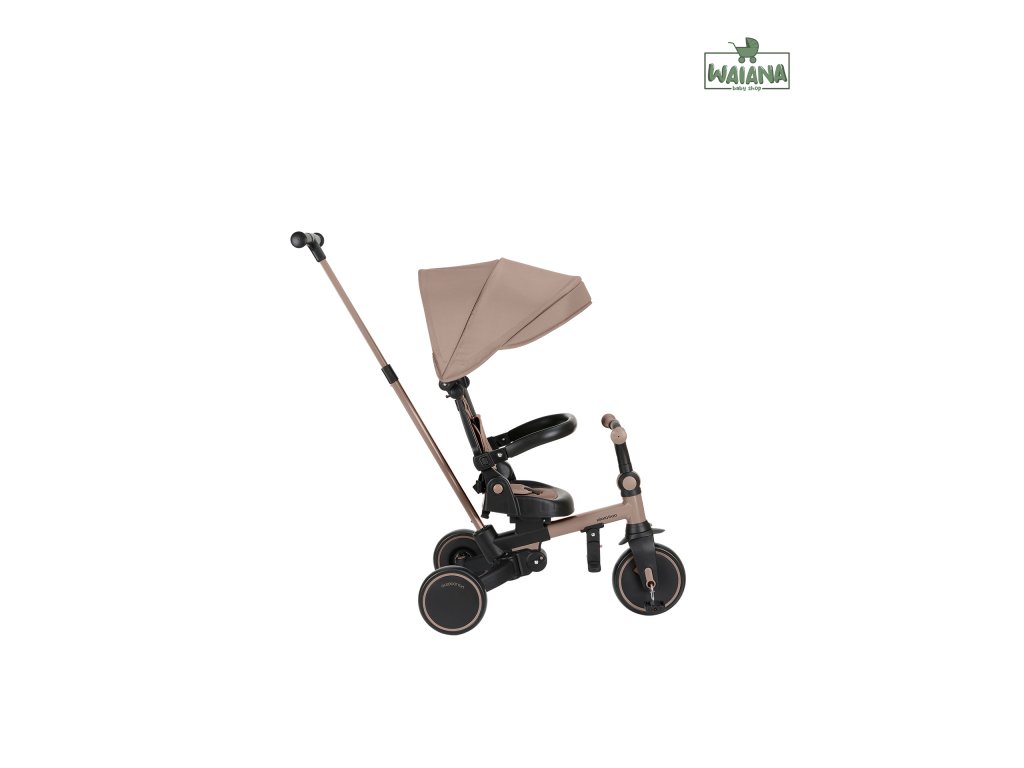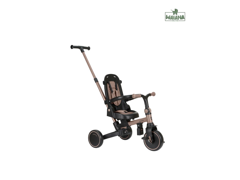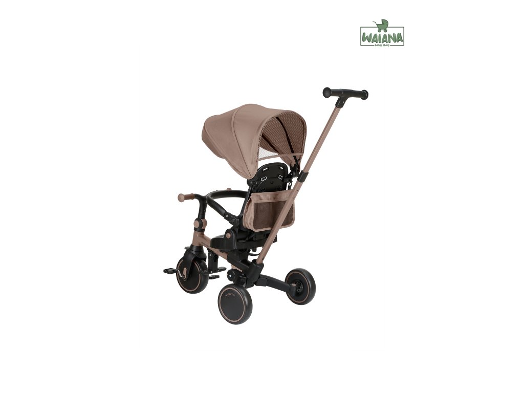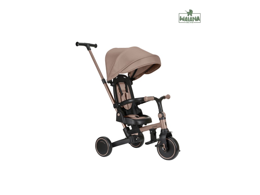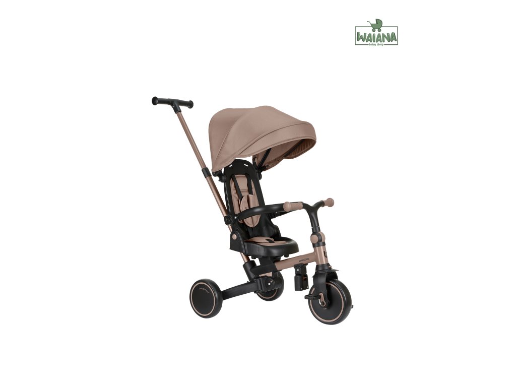 Pre maximálne bezpečie je trojkolka vybavená 5-bodovým pásom, odnímateľným bezpečnostným madlom a nastaviteľnou strieškou, ktorú je možné podľa potreby odňať. Nechýba sklápacia opierka chrbta nastaviteľná do 4 polôh, nastaviteľné riadidlá a otočné sedátko.
