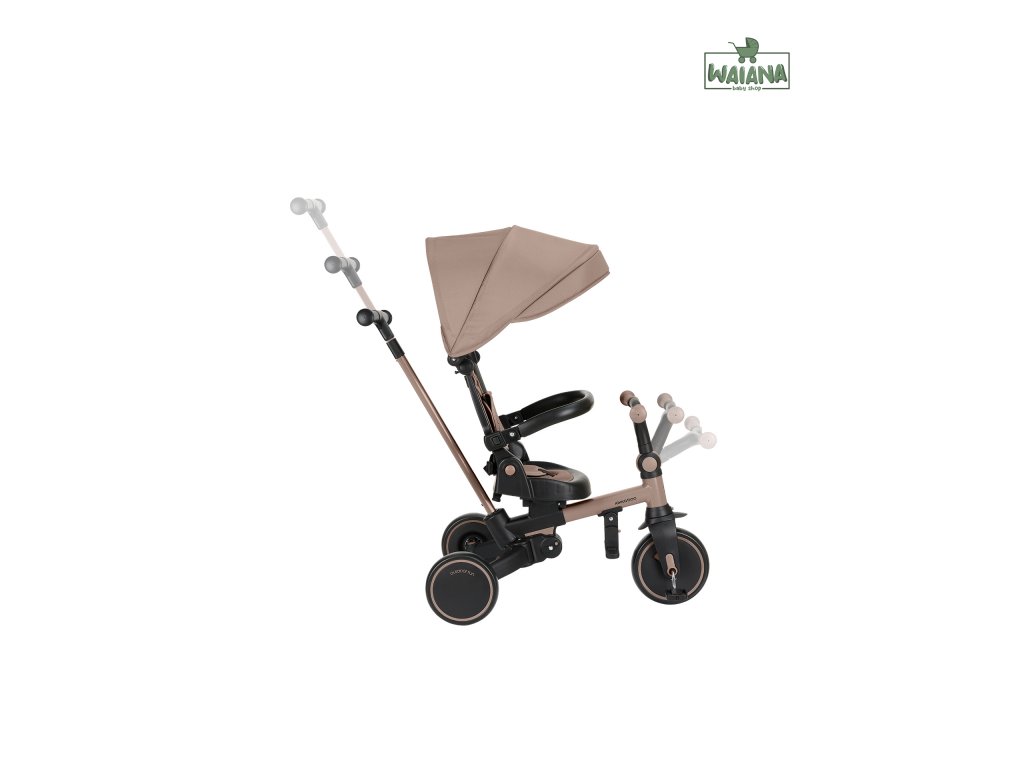 Multifunkčná trojkolka KikkaBoo Aluma 8v1 je navrhnutá tak, aby dieťaťu slúžila naozaj dlho – od 12 do 60 mesiacov. V začiatkoch funguje v bezpečnom „kočíkovom“ režime s vedením rodičom, postupne prechádza do samostatnej jazdy ako trojkolka s pedálmi a odrážadlo. Vďaka skladaciemu prevedeniu a šikovným detailom je ideálny aj na cestovanie.