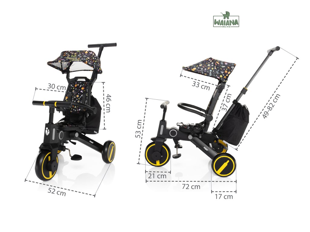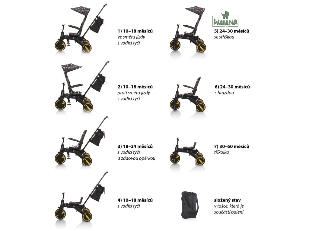 • Variabilná trojkolka, je možné využiť až 7 spôsobmi