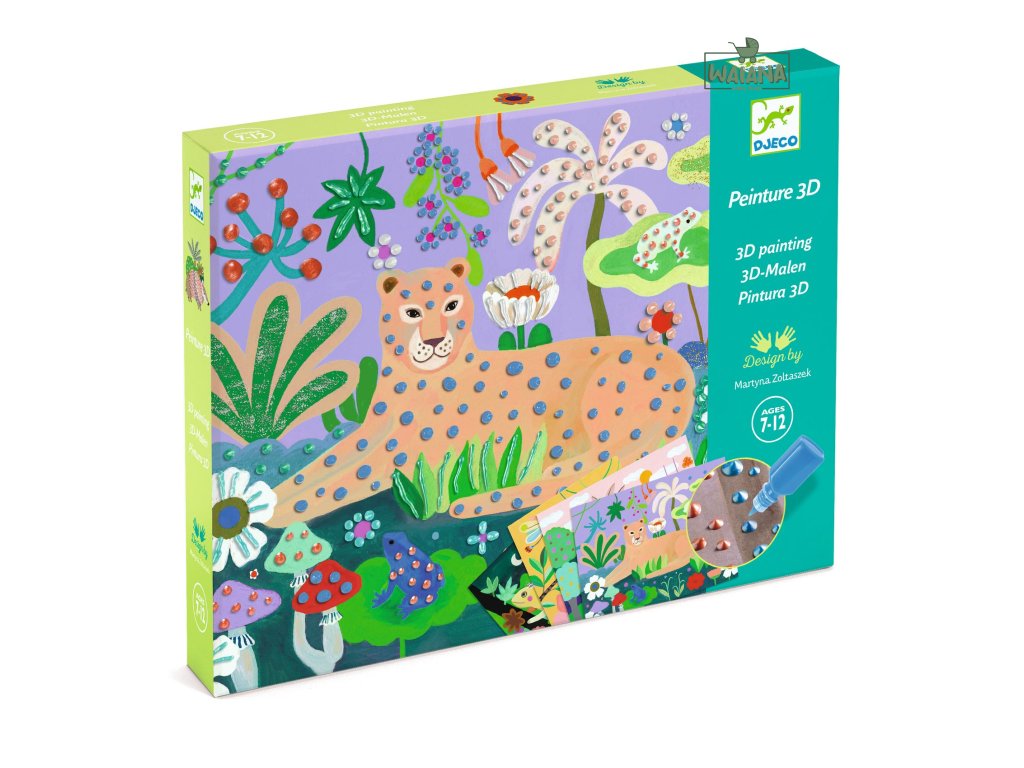 Tropický les: 3D maľovanieKreatívna sada pre deti – 3D maľovanie s farebnými efektmiKreatívna sada Tropický les: 3D maľovanie od Djeco ponúka deťom zábavnú umeleckú aktivitu, pri ktorej pomocou farebných trblietavých, matných aj perleťových farieb vytvoria 3D obrazy s motívmi tropických zvierat a rastlín. Farby sa nanášajú reliéfne, takže výsledné dielo má živý povrch a výrazné efekty. Sada obsahuje ilustrácie pripravené na dokončenie, farby a štetec – deti tak môžu ihneď začať maľovať, miešať farby a vytvárať vlastné umelecké prechody. Táto kreatívna činnosť rozvíja kreativitu, jemnú motoriku a farebné cítenie detí a je ideálna ako darček alebo tvorivý projekt doma či v škôlke.Obsah balenia4 predlohy s motívmi tropického lesa8 farebných 3D farieb (perleťové, trblietavé, matné)1 štetecObrázkový návod krok za krokomPrečo deti túto sadu milujúJednoduché a hravé 3D maľovanieŽiarivé farebné efektyAktívna kreatívna zábavaRozvoj jemnej motoriky a farieb