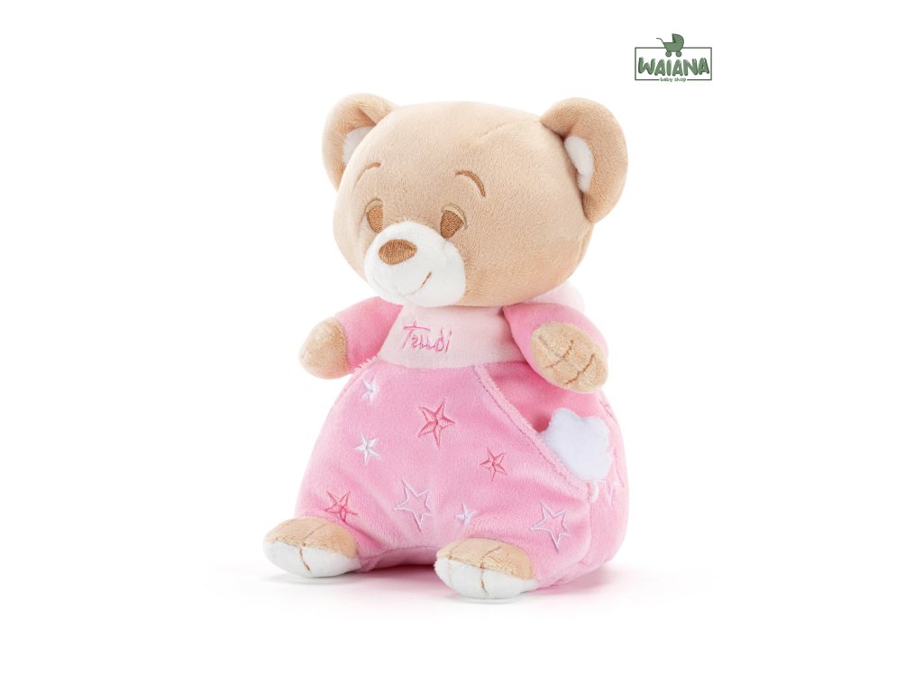 Jemný ako obláčik.Trudi baby star bear sa vyznačuje jemnými doslova bábätkovskými farbami. Všetky detaily sú vyšívané a zvolené materiály sú mimoriadne jemné na dotyk. Pre najkrajšie sny bábätka.Trudi baby star, je rad venovaný maznáčikom na zaspávanie, ktoré sa vyznačujú množstvom jemnosti v kaskáde hviezd. Farby sú jemné a línie sladké, aby sprevádzali tých najmenších vo svete nežnosti. Údržba.Tovar je možné prať v práčke na 30°C, ak to veľkosť dovoľuje, prípadne je možné prať ručne pomocou hubky a neutrálneho mydla.Veľkosť: 12x18x11cm