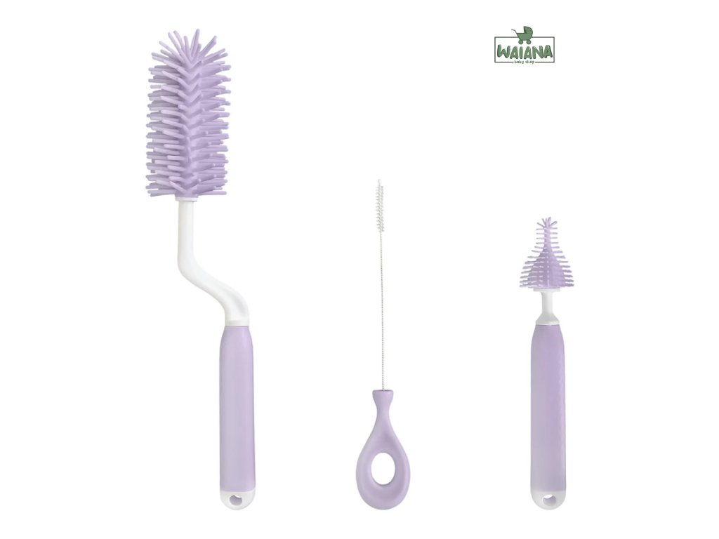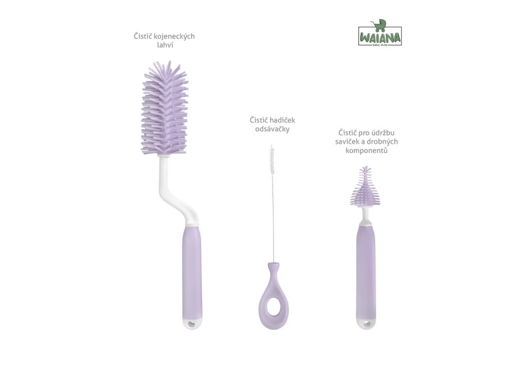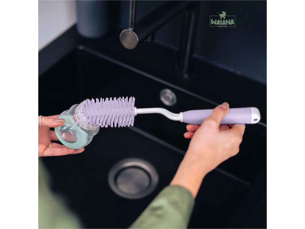 Pomocou setu na čistenie jednoducho zbavíte nečistôt najrôznejšie typy fliaš, cumlíkov, príslušenstva, ale aj ďalších predmetov pre deti. Nezáleží pritom na tom, z akého materiálu sú vyrobené, silikónové štetinky sú šetrné ku sklu, hliníku, keramike, plastu aj ďalším materiálom. Vďaka otočnej rukoväti sa navyše pri umývaní nijako nenadriete, minimalizuje totiž únavu rúk.