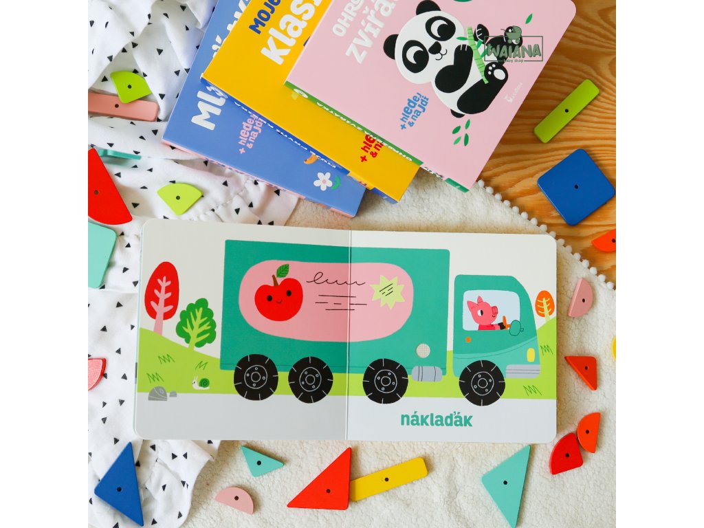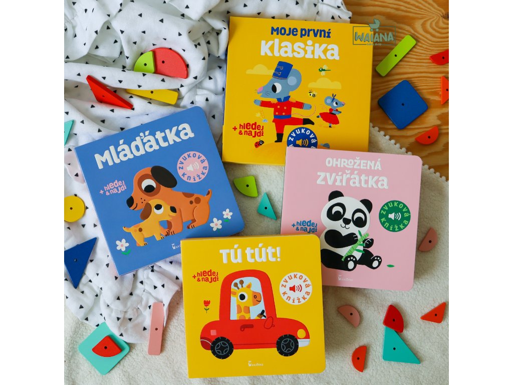 Tú tút! (CZ)Knižka so zvukmi dopravných prostriedkov, do ktorej sa deti radi započúvajú.Stlač tlačidlo a počúvaj trúbenie klaksónov: auta, nákladiaku, bicykla, vlaku a lode. NOVINKA: Na poslednej dvojstrane je zvuková hra Hľadaj & nájdi. Zvukové tlačidlo prehráva náhodne päť zvukov alebo melódií, ktoré patria k piatim obrázkom. Deti majú za úlohu priradiť zvuk alebo melódiu k správnemu obrázku.Deti priraďujú zvuky k správnemu obrázku.Toto zvukové leporelo má novo reliéfnu razbu obrázkov na obálke, zaoblené rohy a funguje s dvoma vymeniteľnými ceruzkovými batériami namiesto pôvodných gombíkových. Všetky zvukové nahrávky sú vo vysokej kvalite a samozrejme nechýba ani tlačidlo ON/OFF, ktorá umožňuje leporelo kedykoľvek vypnúť.