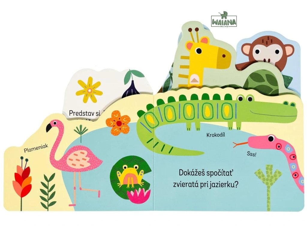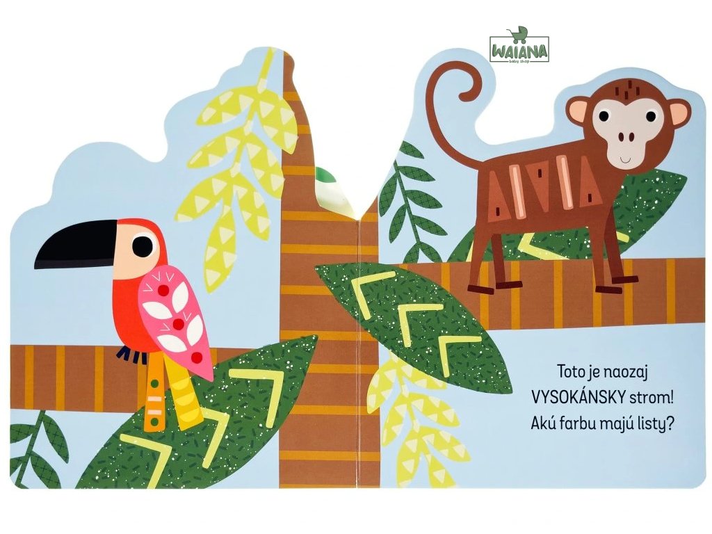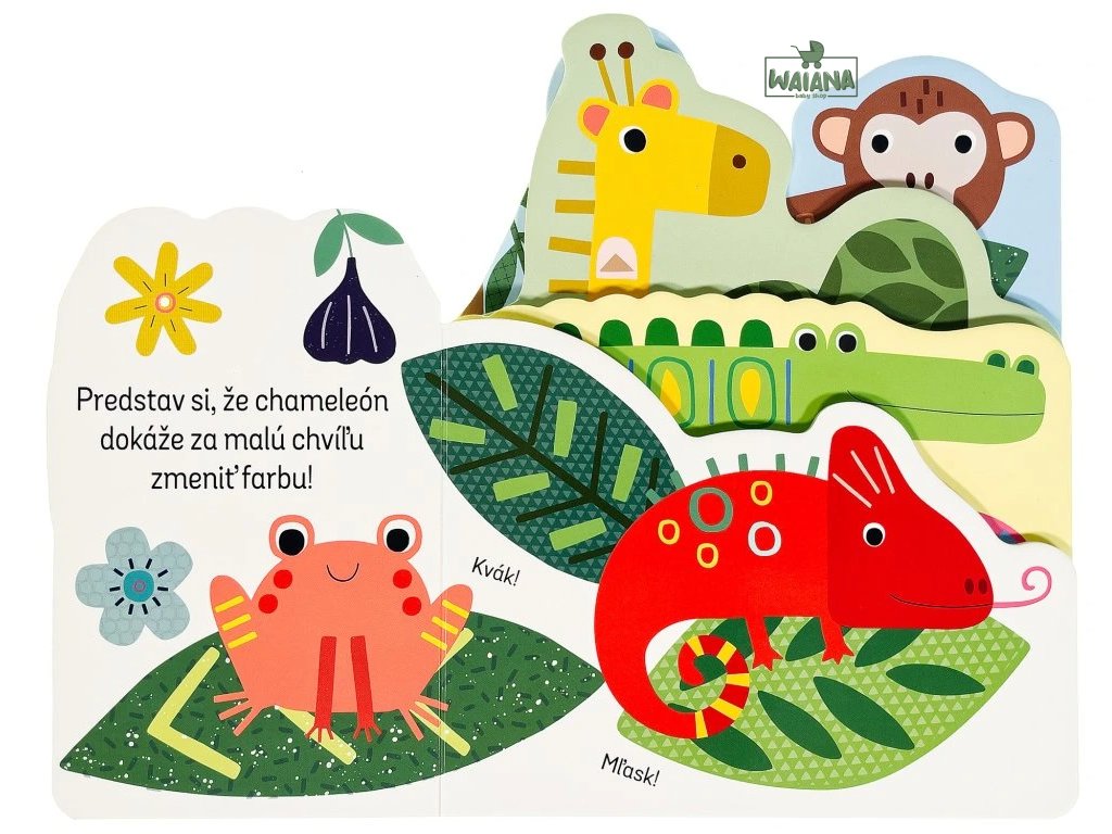 Tvarované leporelo - DžungľaZisti, čo všetko sa deje v džungli, v tejto zaujímavo poňatej knižkeTáto knižka s veselými obrázkami a rôzne tvarovanými stránkami zaujme malé deti a zoznámi ich so zvieratami v džungli.Leporelo má rôzne tvarované stránky, ktoré zaujmú predovšetkým detské prstíkySpod ďalších stránok vykúkajú obrázky, ktoré vzbudia u malých čitateľov zvedavosť - čo asi bude na ďalšej a ďalšej stránke? Kniha s milými ilustráciami obsahuje popisy zvierat z džungle a doplňujúce otázky, a tak sa môžete s dieťaťom rozprávať o týchto exotických zvieratách a pomáhať mu rozširovať slovnú zásobu a rozvíjať fantáziu.