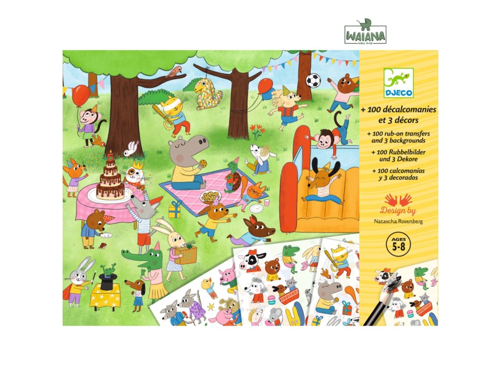 Tvorenie s obtlačkami Čas na párty! Veľká sada obtlačkov pre párty tvorenie Tvorenie s obtlačkami je kreatívna a zábavná sada, ktorá ponúka viac ako 100 obrázkov na prenos na tri veľké pozadia. Deti si môžu vybrať pozadie podľa vlastnej chuti a pomocou ceruzky si naň ošrafujú obtlačky, čím vytvoria jedinečné scény. Prečo si vybrať sadu od Djeco• vhodná pre deti od 5 rokov• jednoduché a kreatívne tvorenie pomocou odtlačkov• ideálne na party dekorácie, pozvánky alebo darčeky• rozvíja kreativitu a fantáziu• skvelé na rodinné tvorivé chvíle či oslavy• vyrobená z materiálov s certifikátom FSC® Obsah balenia• 3 tlačené pozadia (21 x 30 cm)• 3 hárky obtlačkov s vyše 100 obrázkomi.