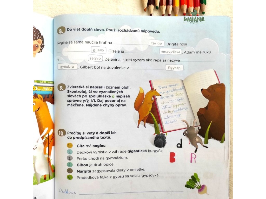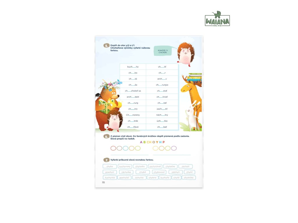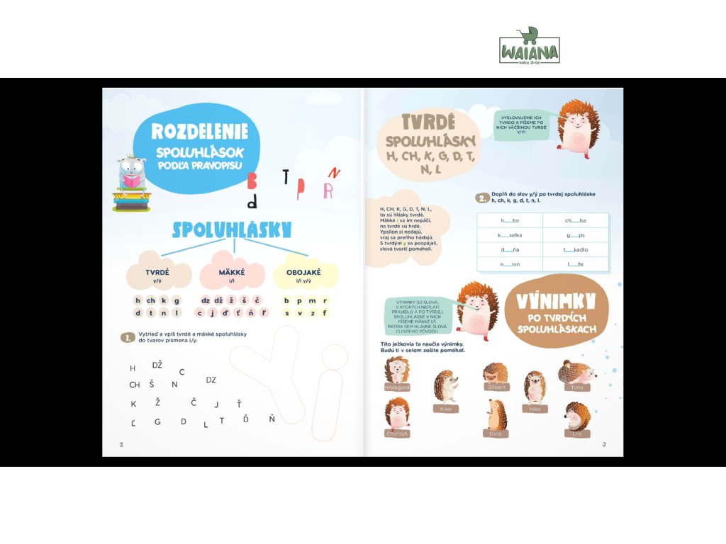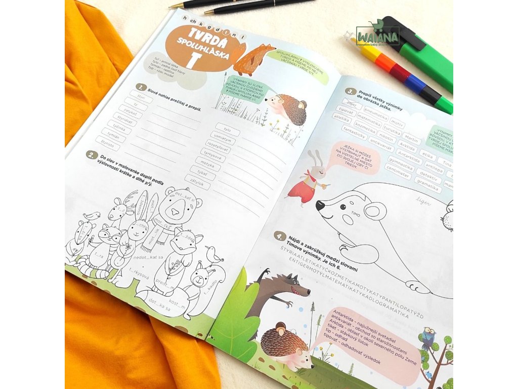 Tvrdé a mäkké spoluhlásky s JežkovcamiPracovný zošit pre 2. ročník ZŠ na precvičovanie spoluhlások a správneho písania.Pracovný zošit je určený na efektívne osvojovanie a precvičovanie tvrdých (h, ch, k, g, d, t, n, l) a mäkkých (dz, dž, ž, š, č, c, j, ď, ť, ň, ľ) spoluhlások. Obsahuje podnetné úlohy a aktivity zamerané na správne písanie i/y, ako aj na precvičovanie výslovnosti mäkkých a tvrdých slabík.Ktoré hlásky sa s tvrdým či mäkkým i/y pospájali, aby slová tvoriť pomáhali?Zošitom sprevádzajú veselí ježkovia, ktorí žiakov naučia pravopisné výnimky – ide o slová väčšinou cudzieho pôvodu, v ktorých po tvrdej spoluhláske nasleduje mäkké i/í a po mäkkej spoluhláske sa v nich píše tvrdé y/ý. Rozmanité úlohy (doplňovanie, vymaľovávanie, prepisovanie, spájanie, krúžkovanie či dokonca vystrihovanie) sú vhodné na precvičovanie v rámci školského vyučovania, ale aj na individuálne upevňovanie vedomostí v domácom prostredí.Benefity:veselá a nenútená forma výučby mäkkých a tvrdých spoluhlásokdôraz na dôkladné porozumenie významu slov, ich správnu výslovnosť aj pravopisroztomilé ilustrácie zatraktívnia vizuálny charakter zošita a motivujú k učeniusprievodcovia – ježkovia upozornia na pravopisné výnimky, ktoré si tak žiak lepšie zapamätározmanitosť úloh