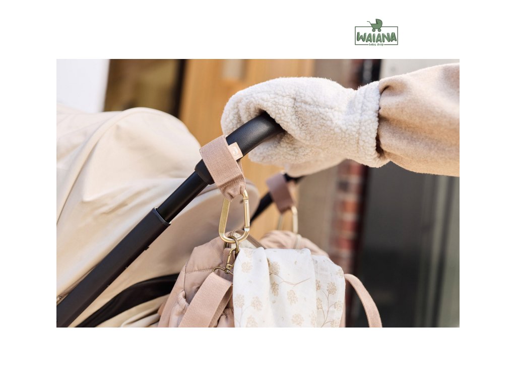 Praktický doplněk na procházky s kočárkem. Univerzální úchyt vám umožní snadno zavěsit přebalovací tašku, kabelku nebo nákupní tašku na rukojeť kočárku, aniž by se kočárek převážil.