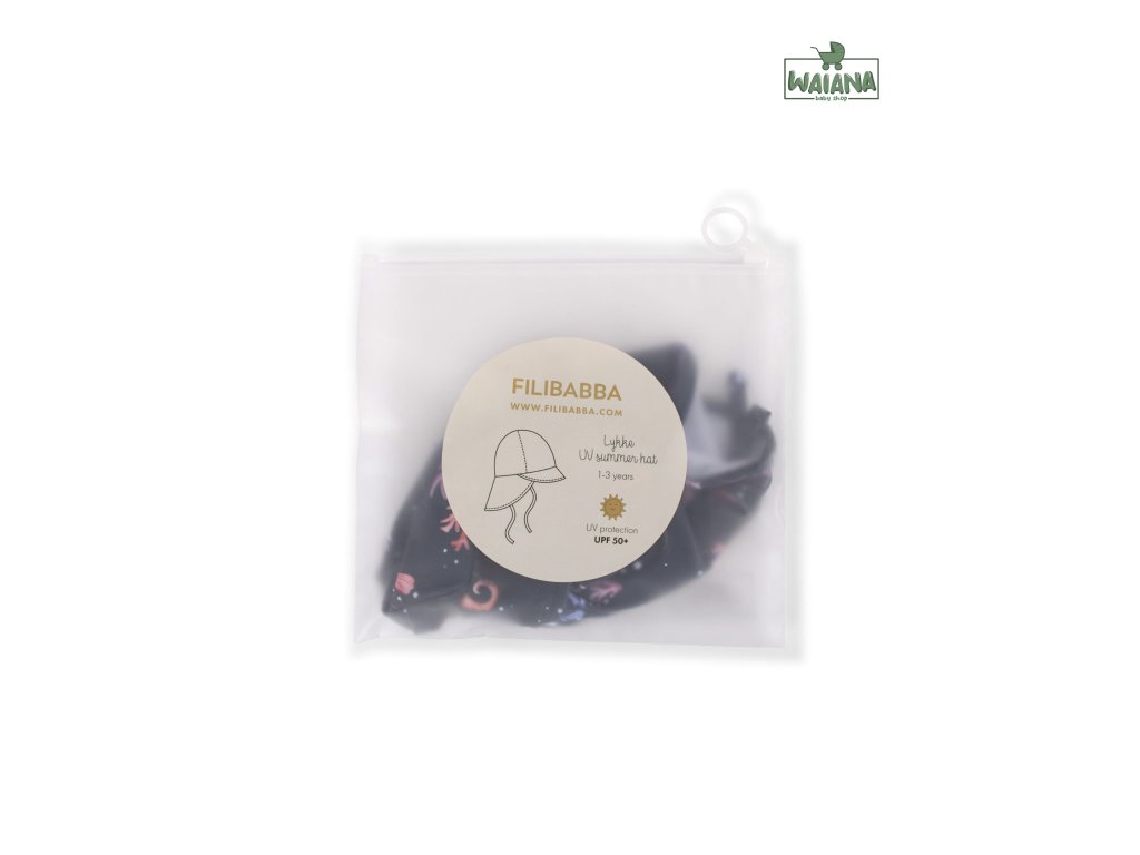 Aby klobúčik proti slnku držal na svojom mieste, dá sa uviazať pod bradou stuhou. Pevný materiál sa ľahko čistí vlhkou handričkou a rýchlo schne. Vďaka tomu je roztomilý slnečný klobúk dokonalým stálym spoločníkom na súši aj vo vode!