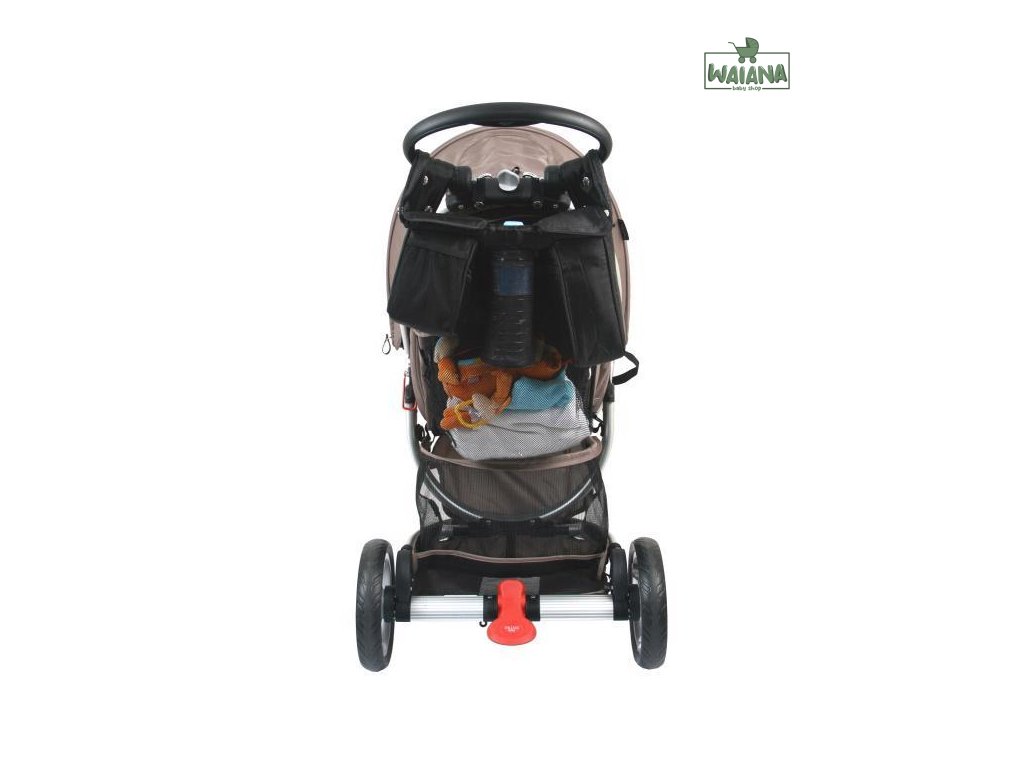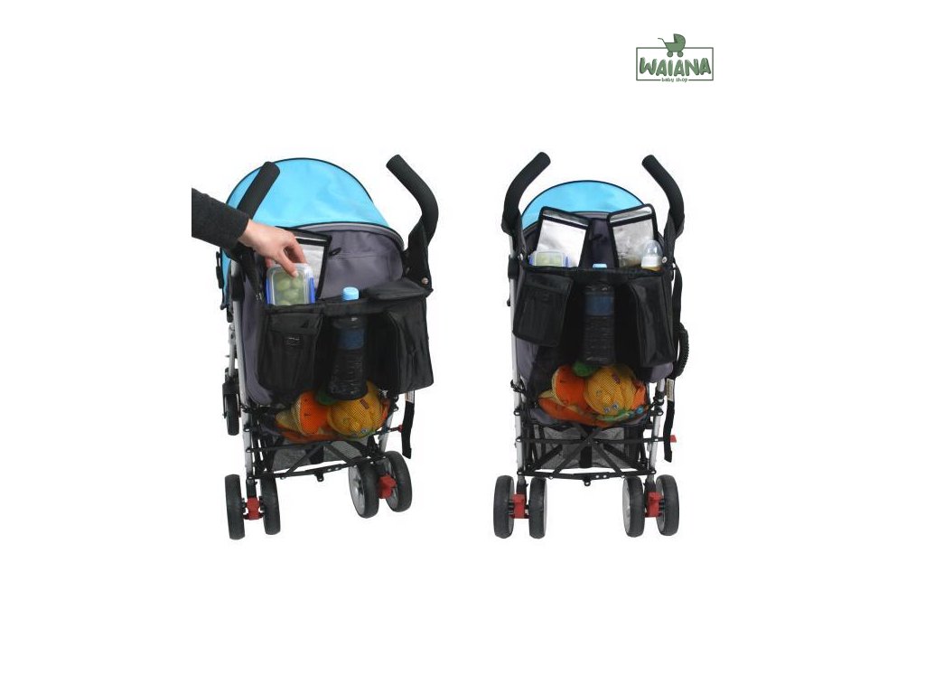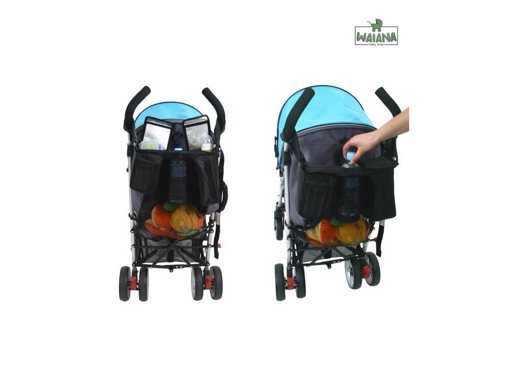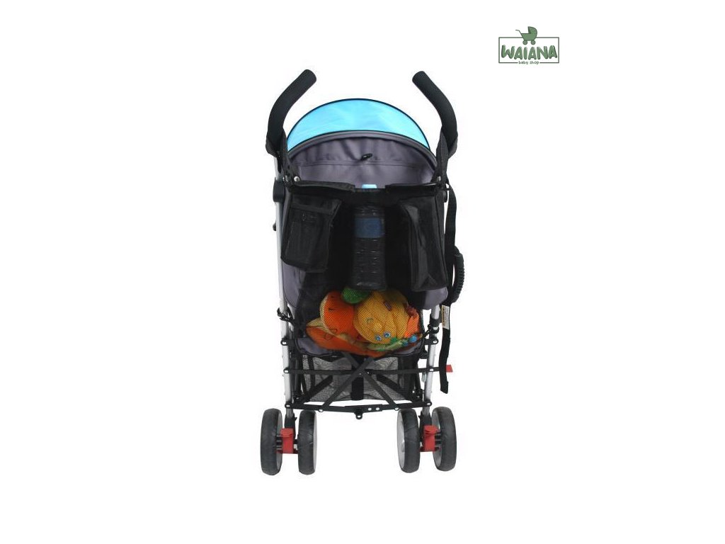 Súčasťou je aj centrálny sieťované vrecko pre nápoje a malé sieťované vrecko na drobnosti, ako sú kľúče alebo mobilný telefón. Veľké sieťované vrecko je ideálny pre uloženie obľúbených hračiek, deky alebo iných potrieb.