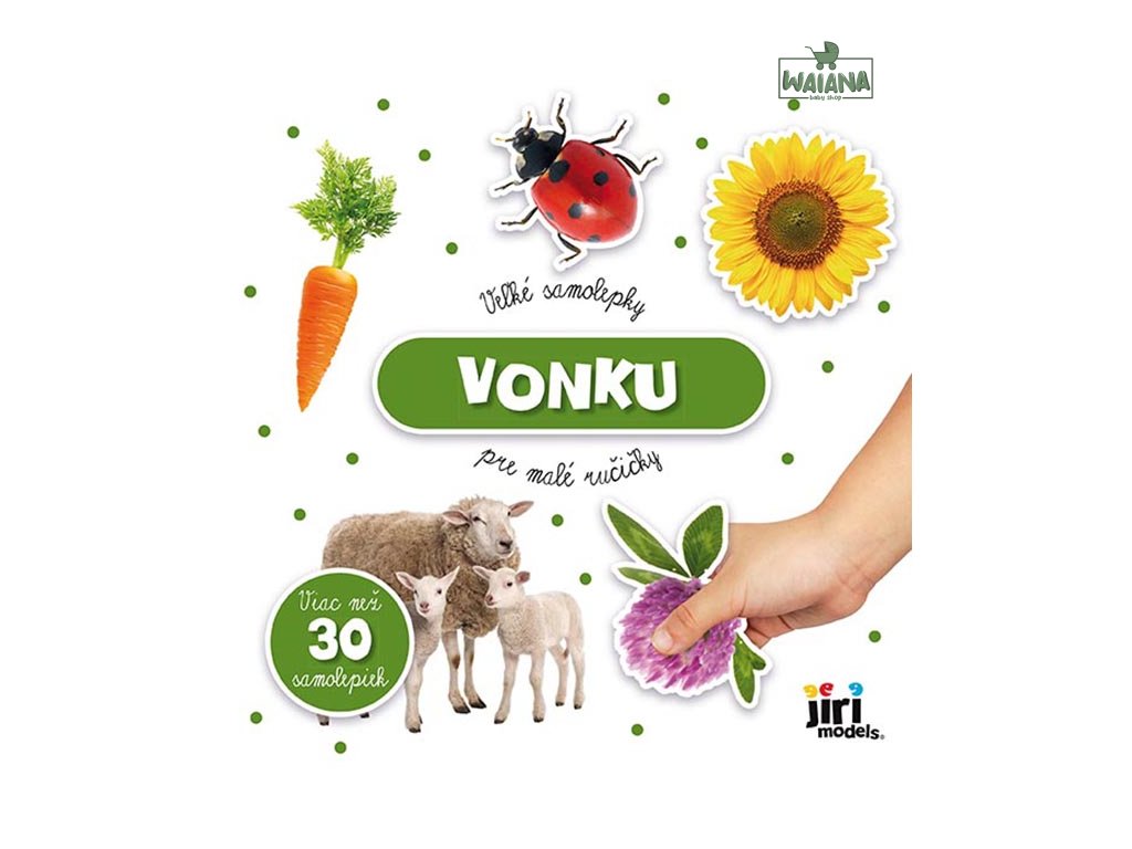 Samolepková knižka Veľké samolepky pre malé ručičky – Vonku ponúka najmenším deťom hravé učenie o tom, čo všetko môžu vidieť a zažiť vonku – v parku, na ihrisku či v prírode. Obsahuje 16 pestrofarebných strán plných ilustrácií a prvých slov, ktoré rozvíjajú slovnú zásobu a poznávanie sveta. Deti si môžu pomocou 4 listov veľkých, ľahko uchopiteľných samolepiek dotvárať jednotlivé scény, čím si precvičia jemnú motoriku, logické myslenie a radosť z učenia.