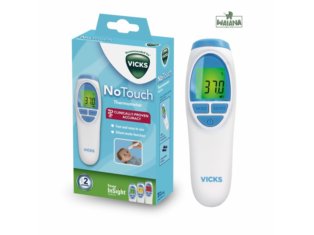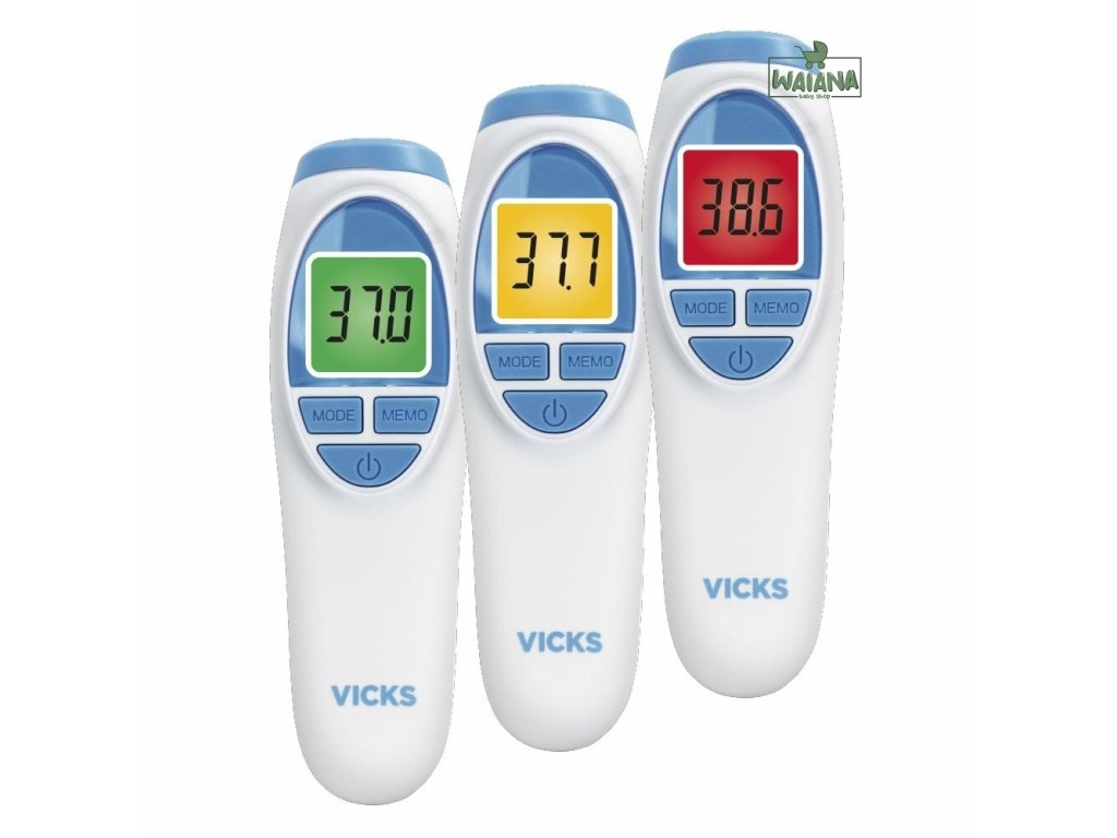 Bezkontaktný teplomer s klinicky overenou presnosťou.Čelový teplomer Vicks poskytuje inovatívnu, klinicky overenú technológiu, ktorá uľahčuje meranie teploty pre rodičov aj pre deti. Jednoduchým posunutím prístroja cez čelo získate okamžité presné meranie. Vlastnosti:-Technológia Fever InSight. -Ľahko čitateľný, veľký, farebne sa meniaci displej s podsvietením. -Neinvazívny, je možné ho použiť, aj keď dieťa spí.-Klinicky overená presnosť.-Rýchle 2-sekundové merania.-Bezpečný, odolný a hygienický.- Značka Trusted Vicks s 2-ročnou zárukou.-Žiadne riziko prehltnutia krytu alebo požitia ortuti.-Pre deti úplne bezpečný.-Pamäť 5 posledných meraní.Zabudovaný systém Fever InSight®. Čelný teplomer Vicks meria infračervenú energiu emitovanú pokožkou nad obočím a okolitým tkanivom. Táto energia je zhromažďovaná šošovkou a prevedená na hodnotu teploty. Meranie teploty sa získava skenovaním nad oblasťou obočia s cieľom dosiahnuť najväčšiu presnosť. Na uľahčenie interpretácie teploty zobrazené tri farby. Zelená - normálna teplota; Žltá zimnica; Červená - vysoká horúčka. Teplomer Vicks má šikovný tichý režim. Táto možnosť vám umožňuje snímať teplotu bez zvuku, napríklad v noci, keď pacient spí alebo keď nechceme dieťa zobudiť. Rýchle meranie za 2 sekundy. Jednoduché, intuitívne ovládanie a rýchle meranie uľahčujú nepretržitú kontrolu teploty. Stačí namieriť teplomer do stredu čela medzi obočie a po 2 sekundách uvidíte výsledok. Presný a spoľahlivý.Zariadenie ponúka klinicky overenú presnosť (+/- 0,2 ° C) od 35 ° C do 43 ° C. Meranie teploty je spoľahlivé vďaka jedinečnej zostave sondy, pokročilému infračervenému senzoru a kompletnému procesu kalibrácie. Obsah balenia: -teplomer, manuál, 2 batérie AAA Ďalšie funkcie.Čelový teplomer Vicks má funkciu automatického vypnutia 20 sekúnd po poslednom meraní, čo predlžuje životnosť batérie. Teplomer Vicks sa dodáva s 2 batériami AAA, ktoré sú dostatočné na vykonanie najmenej 1 000 meraní. Keď sa na LCD objaví blikajúci symbol batérií, vymeňte ich za 2 nové batérie AAA. Batérie je možné ľahko vymeniť posunutím krytu batérií a výmenou batérií podľa označenia.