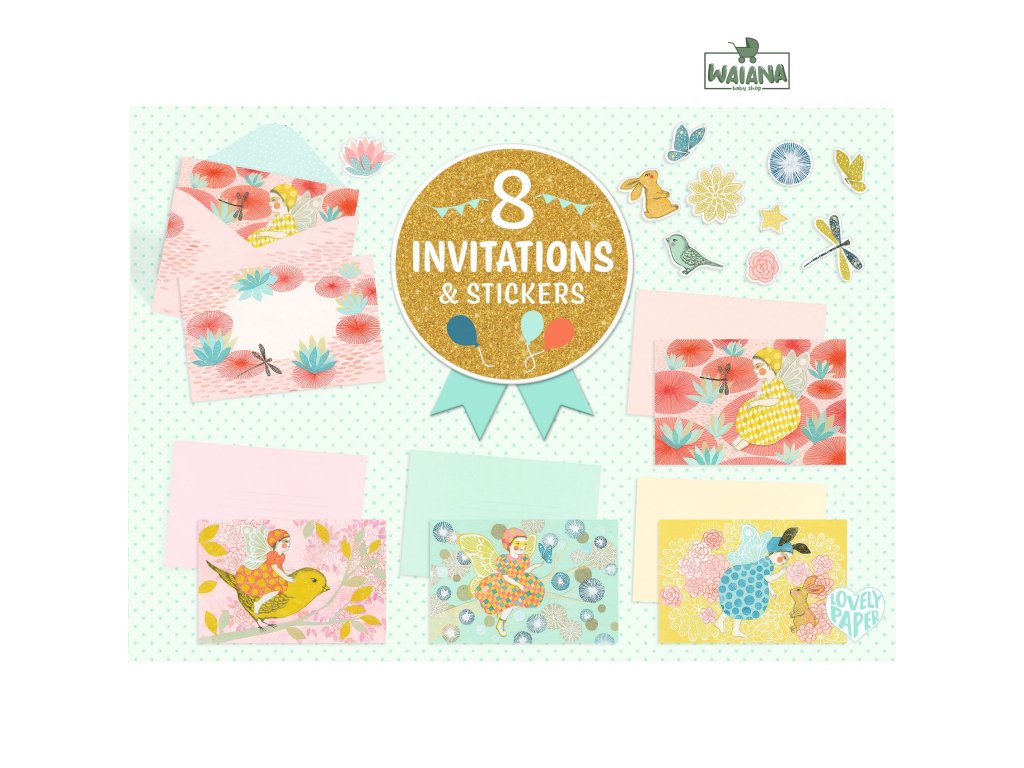 Víly: 8 pozvánok & samolepkyVeselá sada na oslavy a tvorenieVíly: 8 pozvánok a samolepiek je zábavná sada pre deti, ktorá obsahuje 8 farebných pozvánok, 8 ilustrovaných obálok a samolepky na ich ozdobenie. Sada je ideálna na narodeninové oslavy, tematické párty alebo na tvorivé aktivity. Dizajn má metalické detaily a matnú potlač.Prečo si vybrať sadu od Djeco8 pozvánoksamolepky na ozdobenieskvelé na oslavy a tvorivé hryObsah balenia8 kusov pozvánok s ilustráciami8 obálok2 hárky samolepiek na zdobenie