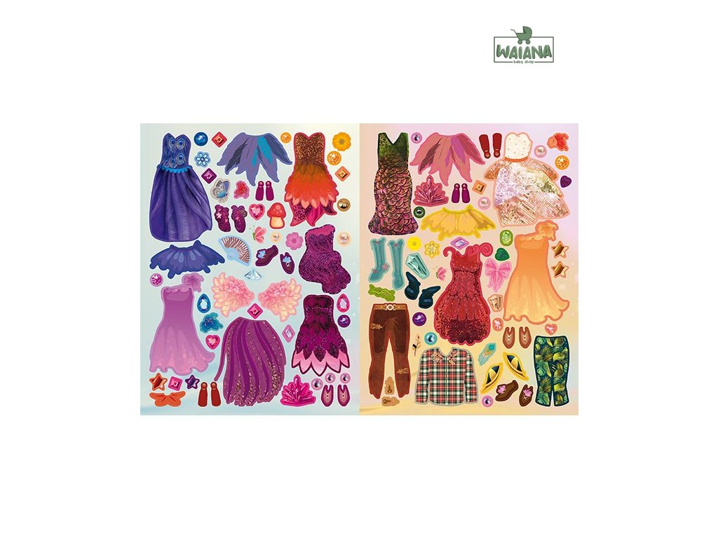 Víly Samolepková módaŠtýlové outfity pre vílyVstúp do čarovného sveta víl a obleč ich do tých najkrajších a najkreatívnejších outfitov! Táto samolepková knižka obsahuje 24 strán a viac ako 440 samolepiek, ktoré ti umožnia vytvoriť dokonalý štýl pre tvoje víly. Môžeš si vybrať z rôznych šiat, topánok a doplnkov, aby si postavičky oblečila na každú príležitosť – od magických večierkov po tajomné lesné prechádzky.