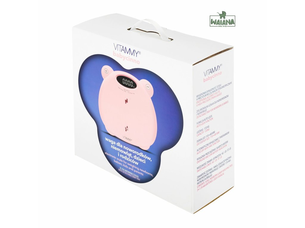 Vysoká citlivosť a presnosť.Váha Vitammy Babycinno sa vyznačuje vysokou citlivosťou a presnosťou vďaka presným tenzometrom, aby bolo možné pozorovať aj tie najmenšie zmeny hmotnosti dieťaťa. Obľúbená váha rodičov bábätiek.VITAMMY Babycinno je ľahká a skladná, môže byť vždy po ruke, zaberá málo miesta. Vďaka plochému tvaru sa dá schovať kdekoľvek. Hmotnosť váhy je len 101 g a jej maximálna nosnosť je 120 kg. Najlepšia voľba pre novorodencov a dojčatá.-extrémne presná - do 5 gramov-umožňuje váženie bábätiek v ležiacej polohe -blokuje výsledok váženia, aby bolo možné ho odčítať-ergonomický tvar - zapustená vážiaca plocha -stabilná konštrukcia -intuitívne ovládanie -veľký LCD displej -4 presné tenzometre -automatické vypnutie Automatické tarovanie po zapnutí, tarovanie a auto-hold.Tri užitočné funkcie, ktoré výrazne uľahčia používanie váhy. Automatické tarovanie - znamená, že váha je pripravená vážiť dieťa hneď po zapnutí bez akýchkoľvek ďalších úkonov. Funkcia Tare - vďaka ktorej prístroj ukáže správnu hmotnosť tak, že odpočíta napríklad váhu prikrývky, na ktorú chceme bábätko pri vážení položiť. Ak chcete merať presne, môžete dokonca odpočítať hmotnosť plienky dieťaťa. Funkcia auto-hold - zmrazí výsledok váženia na obrazovke, vďaka čomu je možné ho pokojne prečítať, aj keď sa dieťa hýbe. Kvalita VITAMMY.Vyvinuli sme maximálne úsilie, aby bol výrobok najvyššej kvality, aby bol pohodlný a bezpečný pre deti a ľahko sa používal.