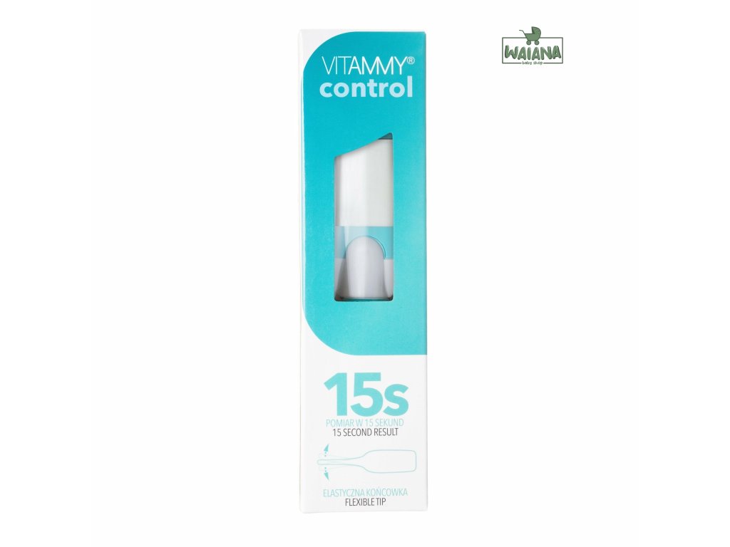VITAMMY Control - elektronický teplomer novej generácie s veľkou obrazovkou, flexibilným hrotom a rýchlym meraním za 15 sekúnd. Extra veľká obrazovka uľahčuje čítanie výsledku.
