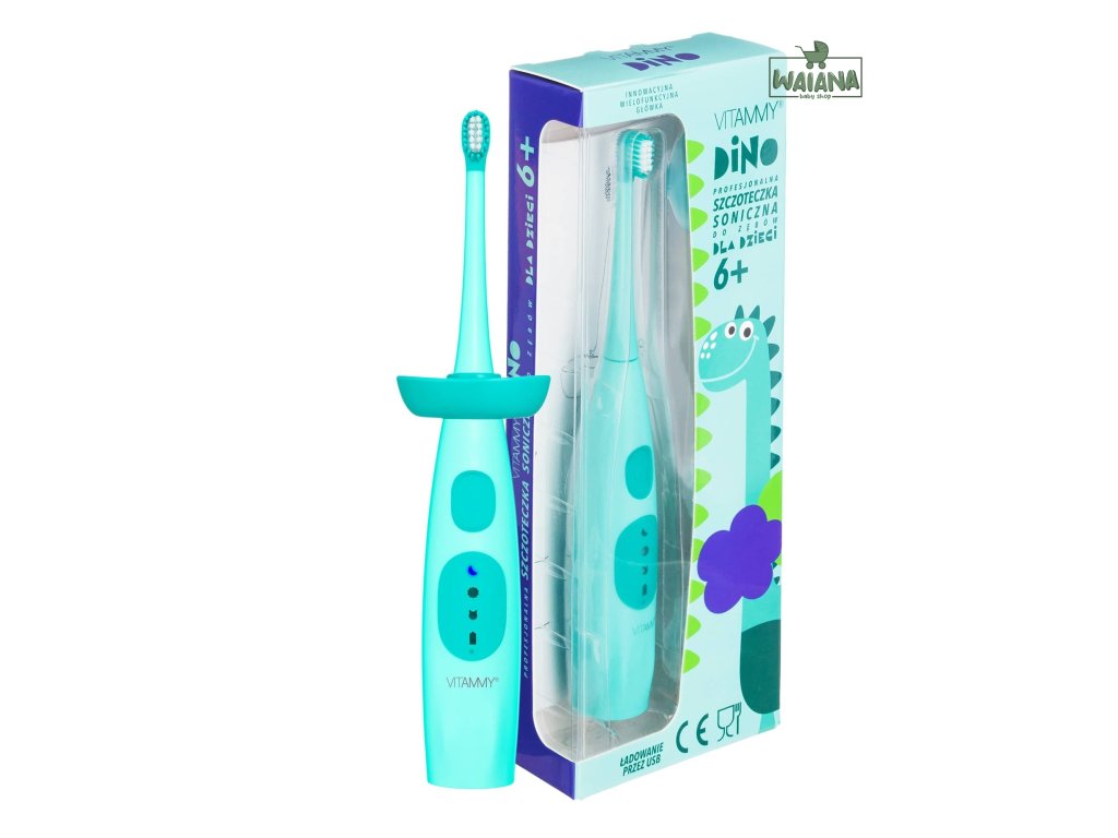 Vitammy Dino je jedinečná zubná kefka, ktorá privedie vaše dieťa do sveta sonických technológií. Vysokokvalitná vymeniteľná hlava s vláknami DuPont™ sa dokonale prispôsobí detským zubom, zatiaľ čo vysoká miera vibrácií a pohodlné, ľahké puzdro sú ideálne pre deti vo veku 6+. Objavte Vitammy Dino - sonickú zubnú kefku, s ktorou bude každodenné čistenie zubov potešením!