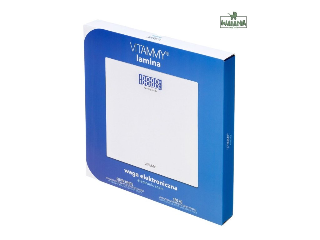 VITAMMY Lamina je precízna, dokonale vyrobená elektronická kúpeľňová váha s nadčasovým vzhľadom. Snehobiela sklenená plocha s veľkým displejom dokonale zapadne do interiéru každej kúpeľne, čím ju zatraktívni a okrášli.